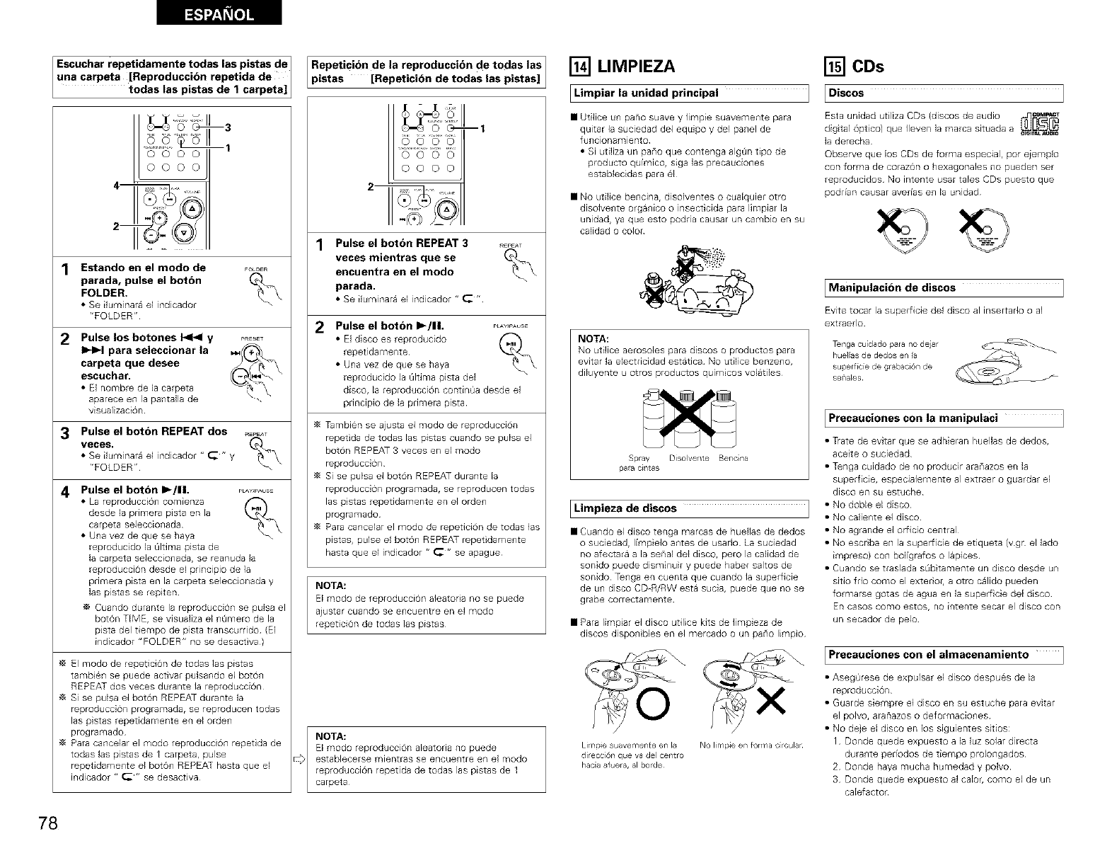 O El modo reproducci6n rio • _Esta el disco sucio o rayado? • Lir'lpie la suciedad de dsco o 78