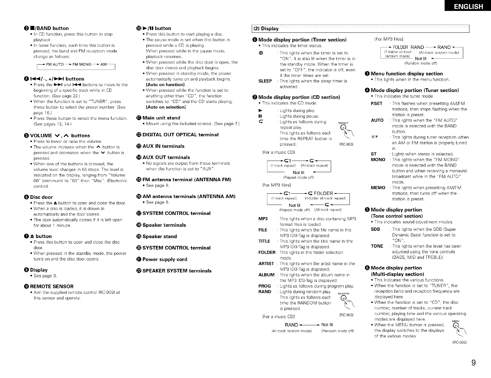 •Mando a distancia (RC-909}