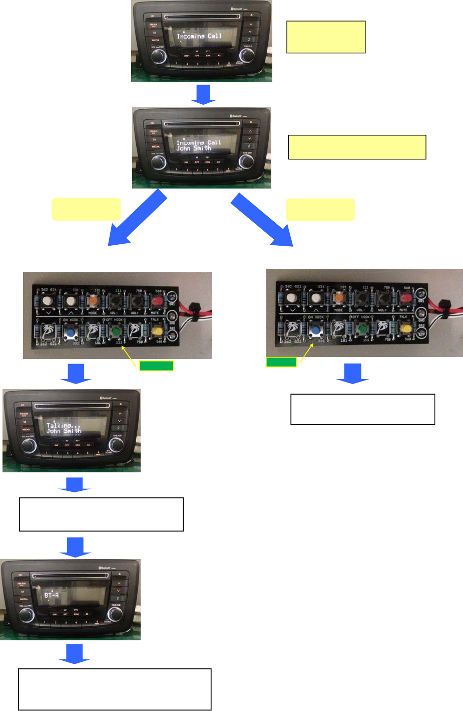 Push "OFF HOOK" button to answer the call Push "ON HOOK" button to reject call