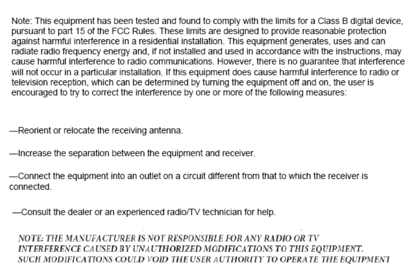 Corp., Ltd. may void the FCC authorization to operate this device.