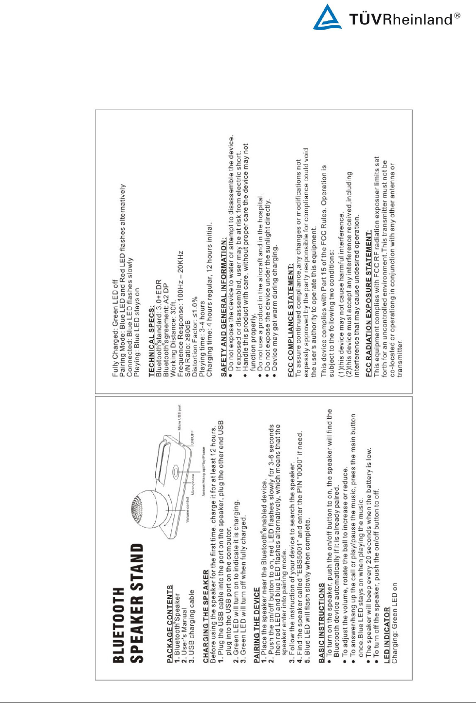 DEPO EBS5001 Bluetooth Speaker User Manual 14033267 001 FCC