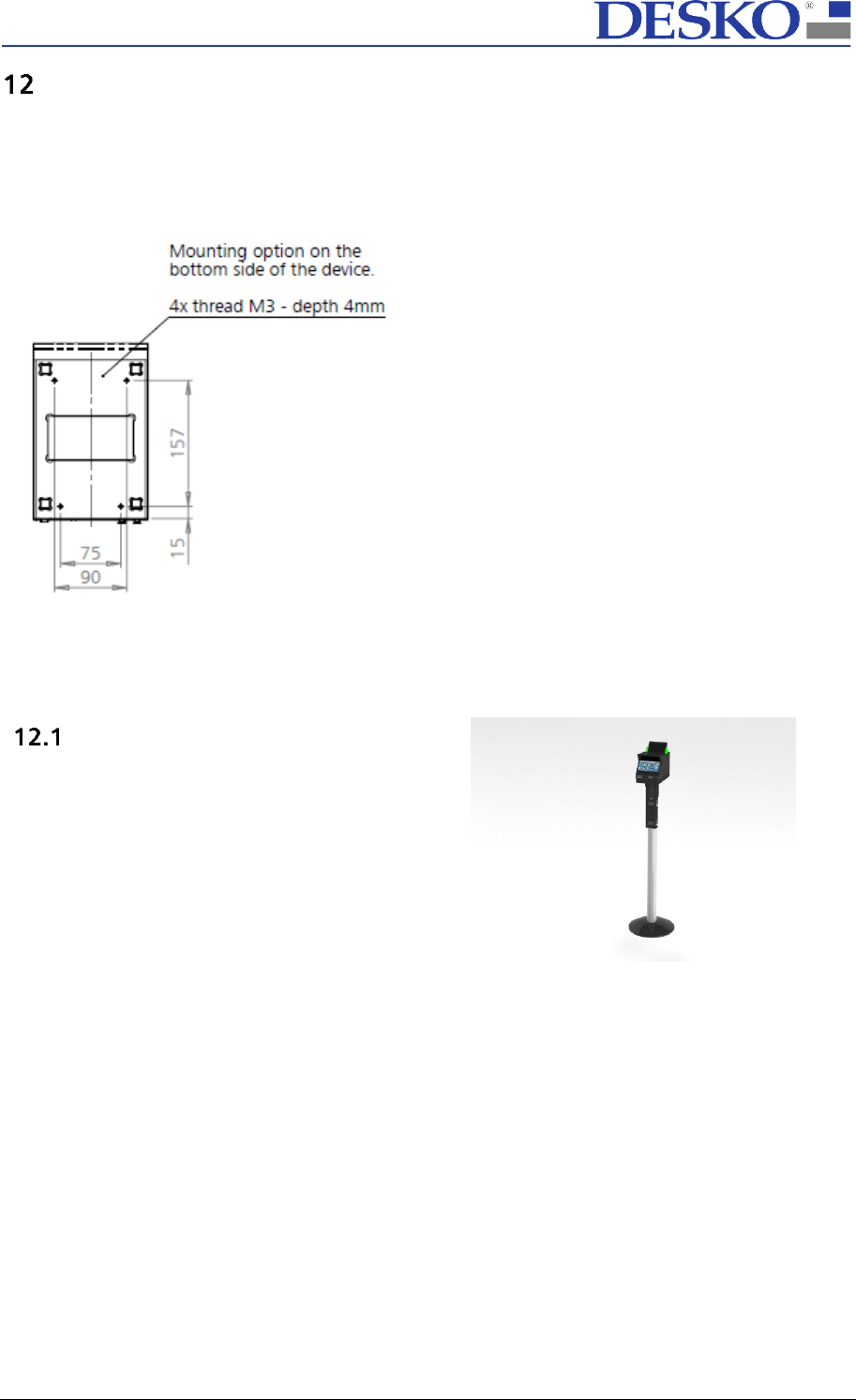 Scanner is equipped with four thread inserts M3 – depth 4 mm at the bottom side of the device, as