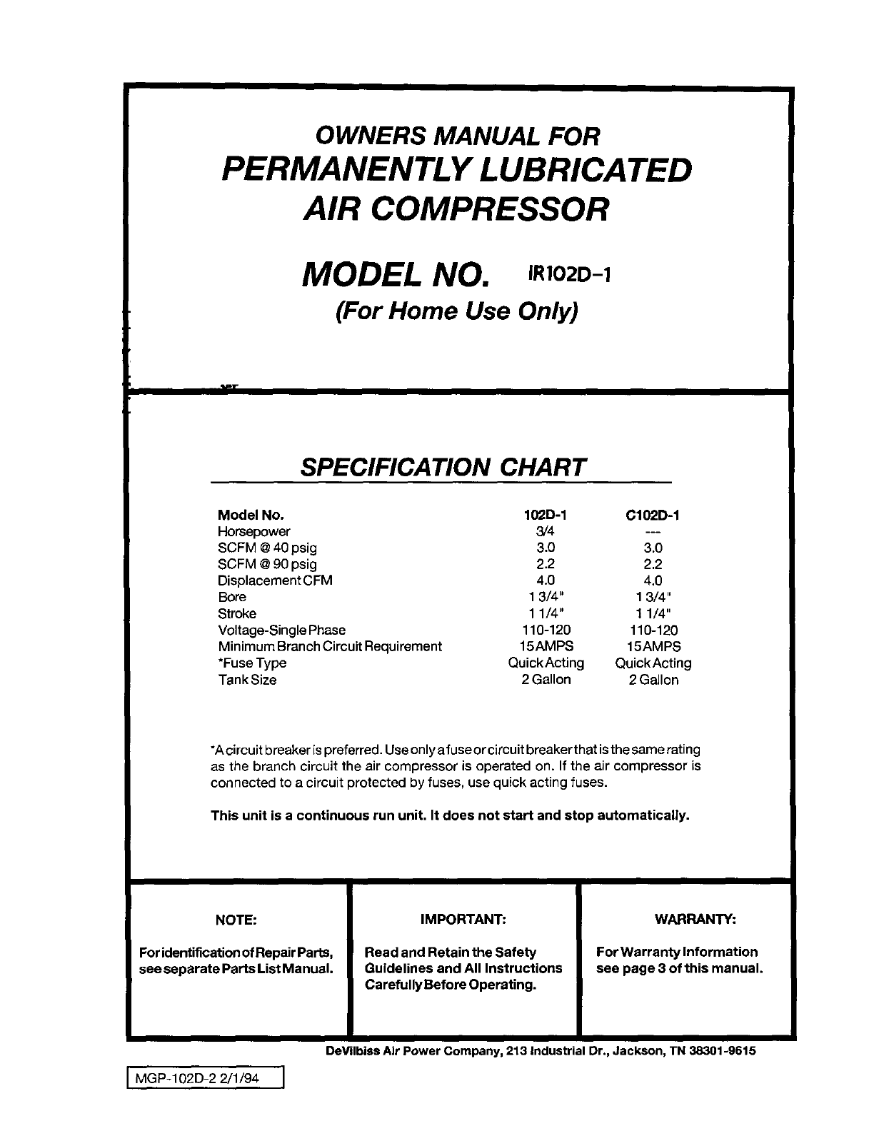 User Manual: DEVILBISS DEVILBISS Air compressor Manual DEVILBISS Air compressor Owner's Manual, DEVILBISS Air compressor installation guides
