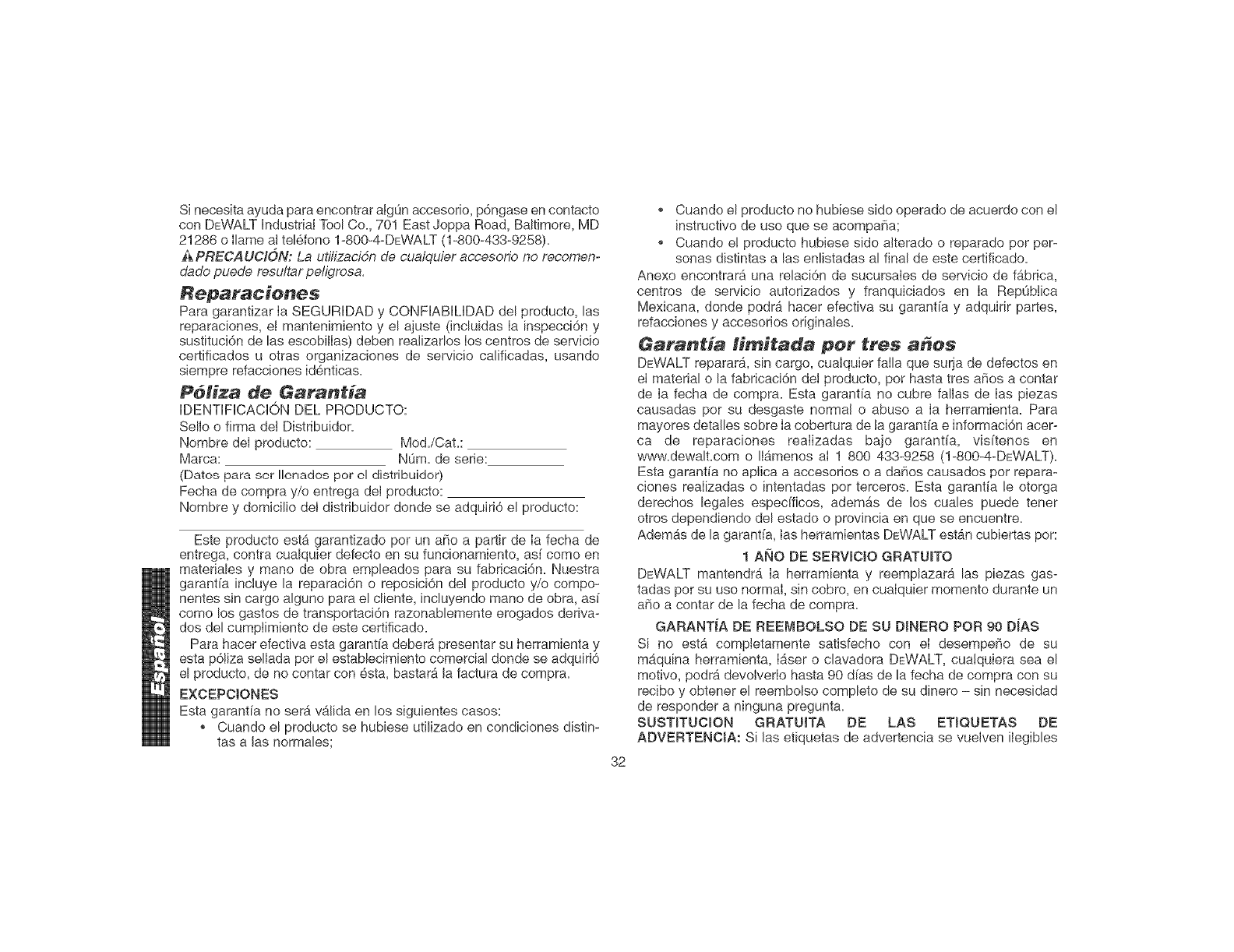 AdemAs de la garantfa, tas herramientas DEWALT estAn cubiertas pot: