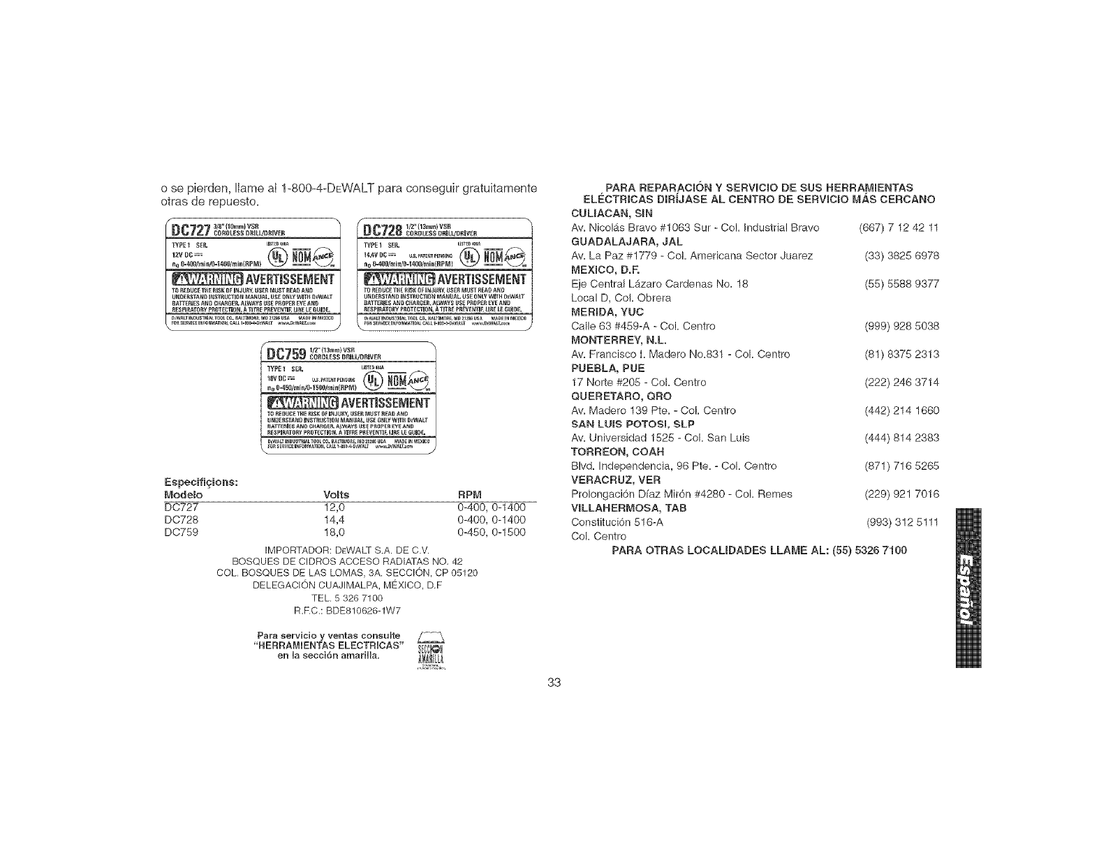 www.dewalt.com o IIAmenos aI 1 800 433-9258 (1-800-4-DEWALT).