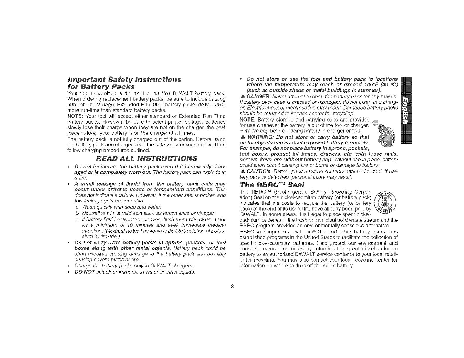 battery pack. Use of any ot,_er batteries may create a risk of tire.