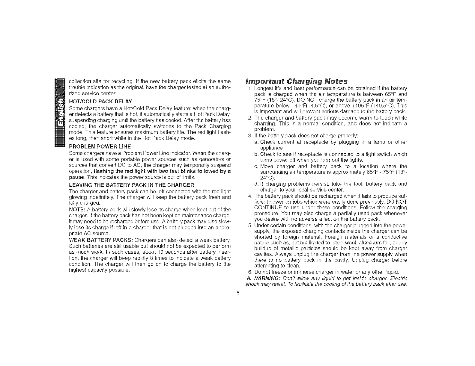 battery pack must be recharged only with the specified charg-