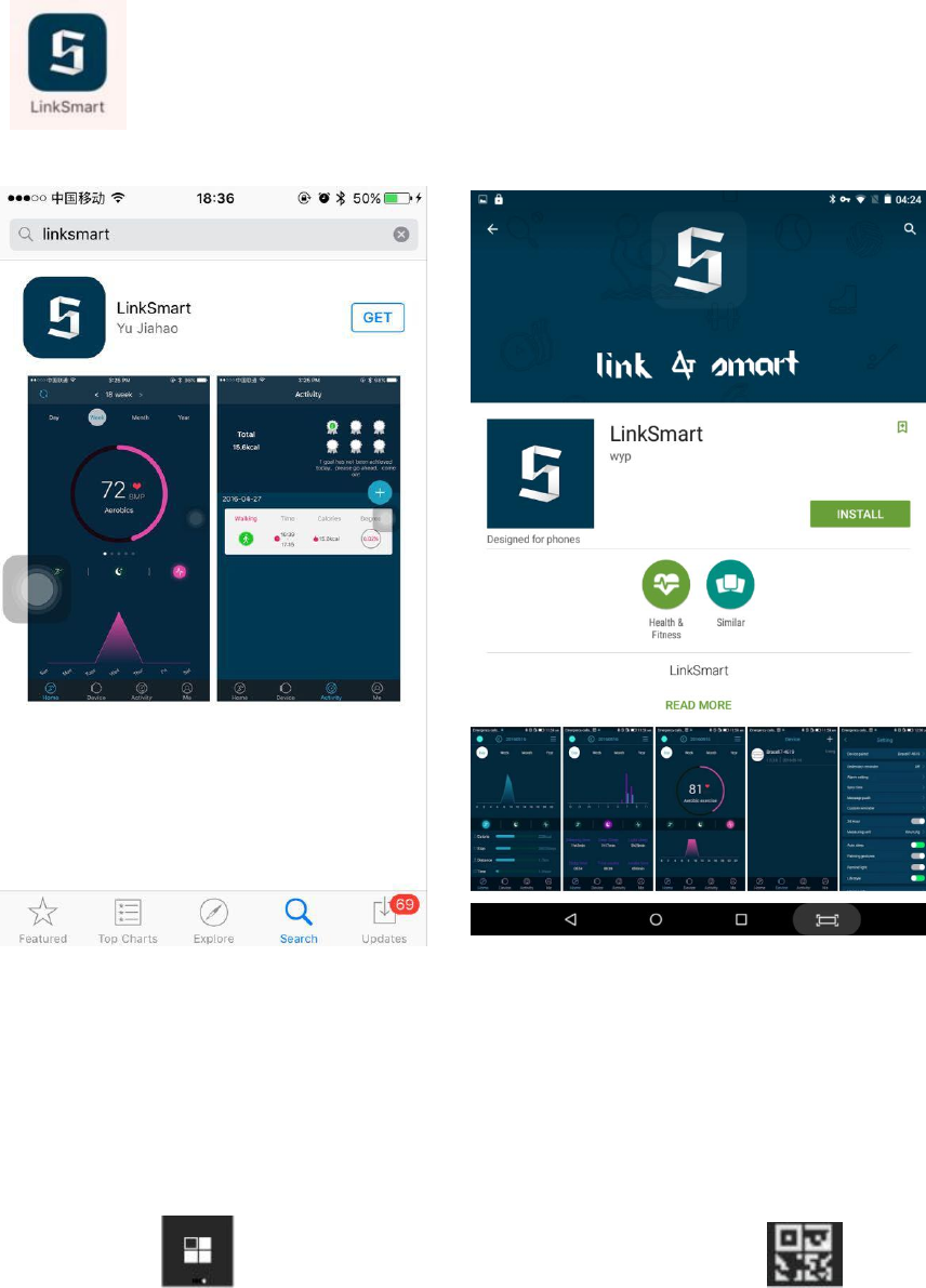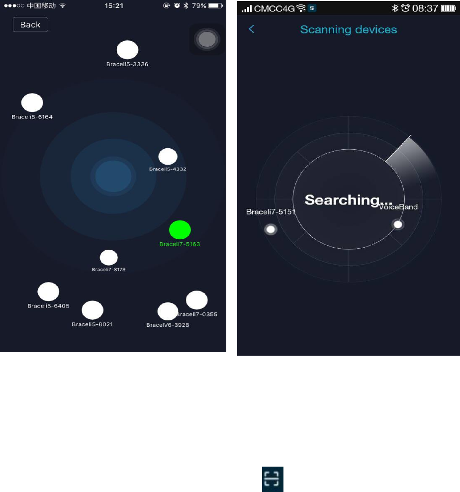 1.Long press to amplify the QR code in bracelet.Find the code in it.