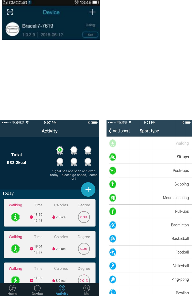2.In the【Activity】page,click the “+” to add sport type. You can choose