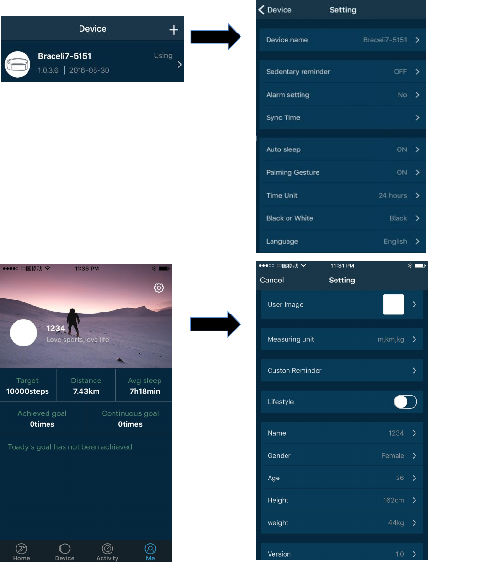 2.In 【Device 】page,click the connected bracelet using,setting below