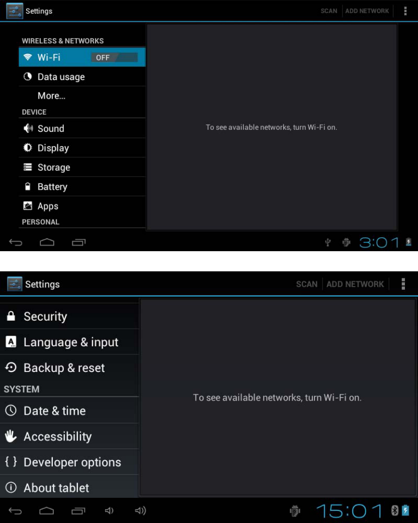 4.1.1 Access Settings-Wireless & Networks- Wi-fi
