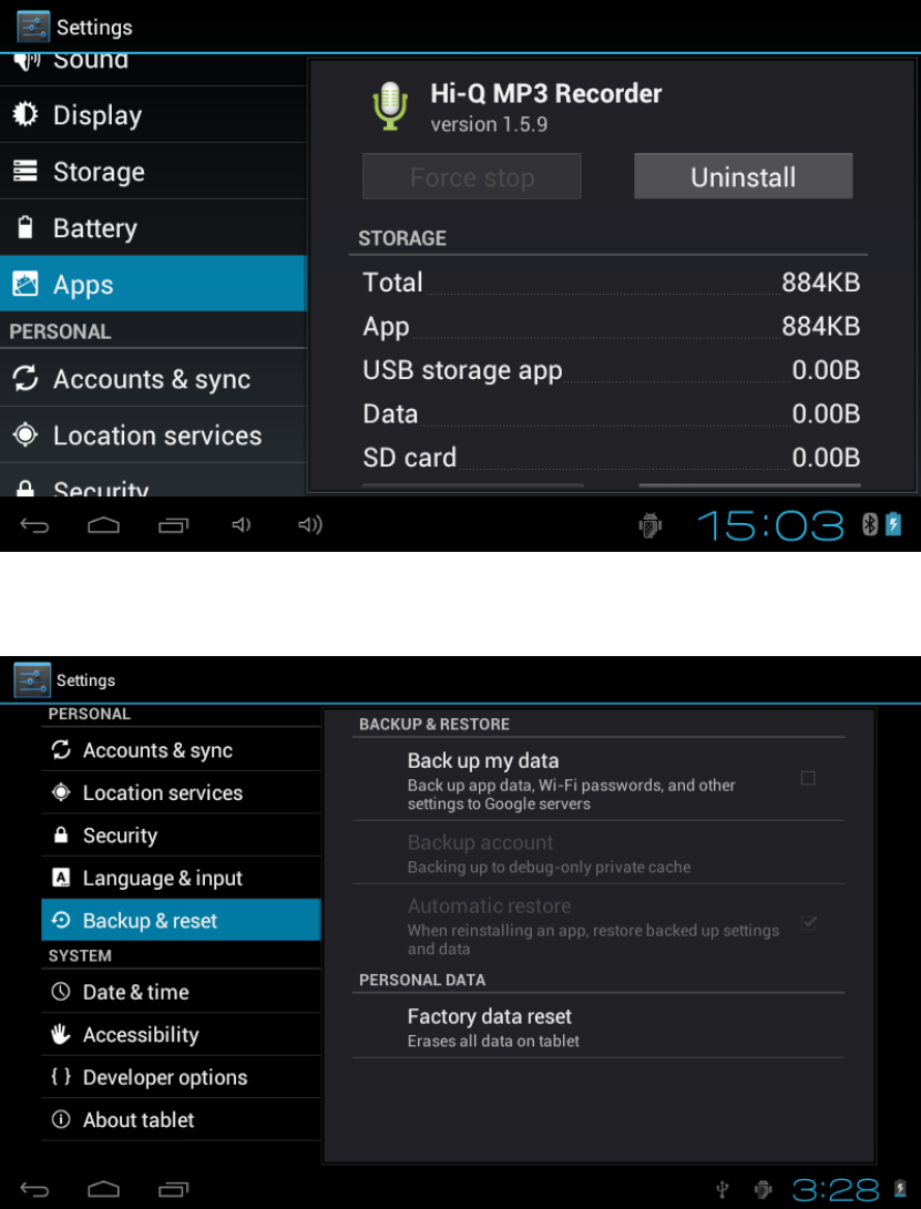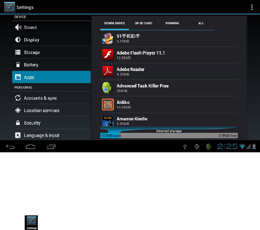 1. enter   “setting”>”Application”>”Manage application” And then there will be