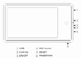 ⑴:USB slot  ⑵:lock button ⑶:power on/off button  ⑷: MIC slot
