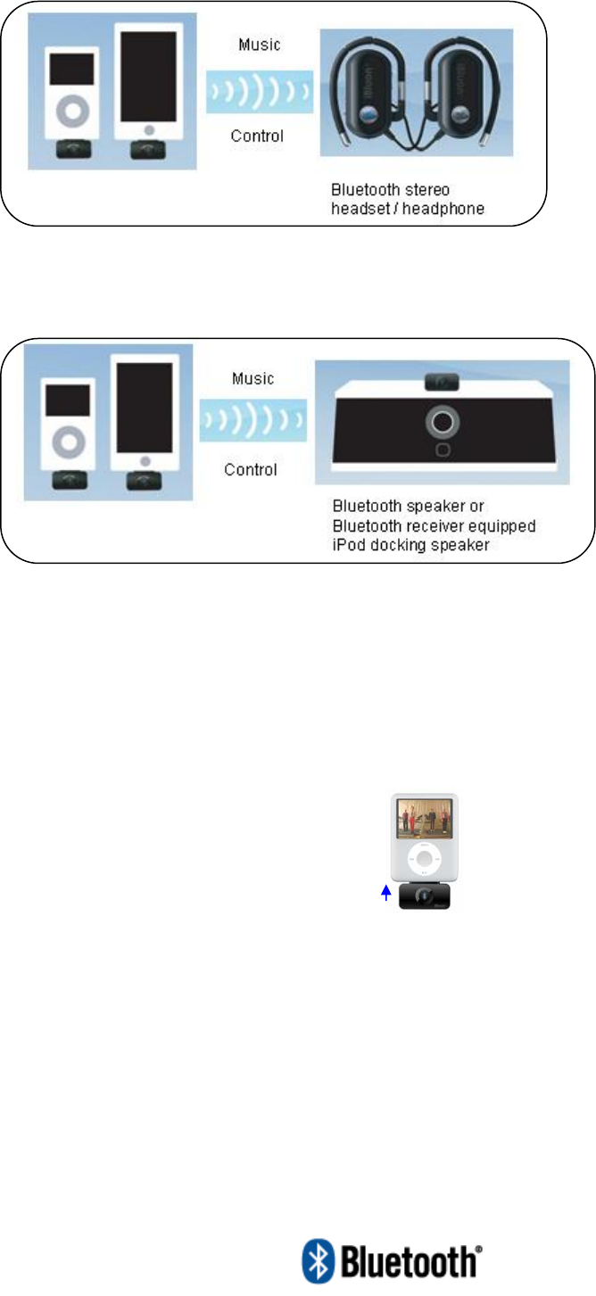 technology. It can transfer audio from Apple iPod/iPhone to a Bluetooth stereo headset/headphone or