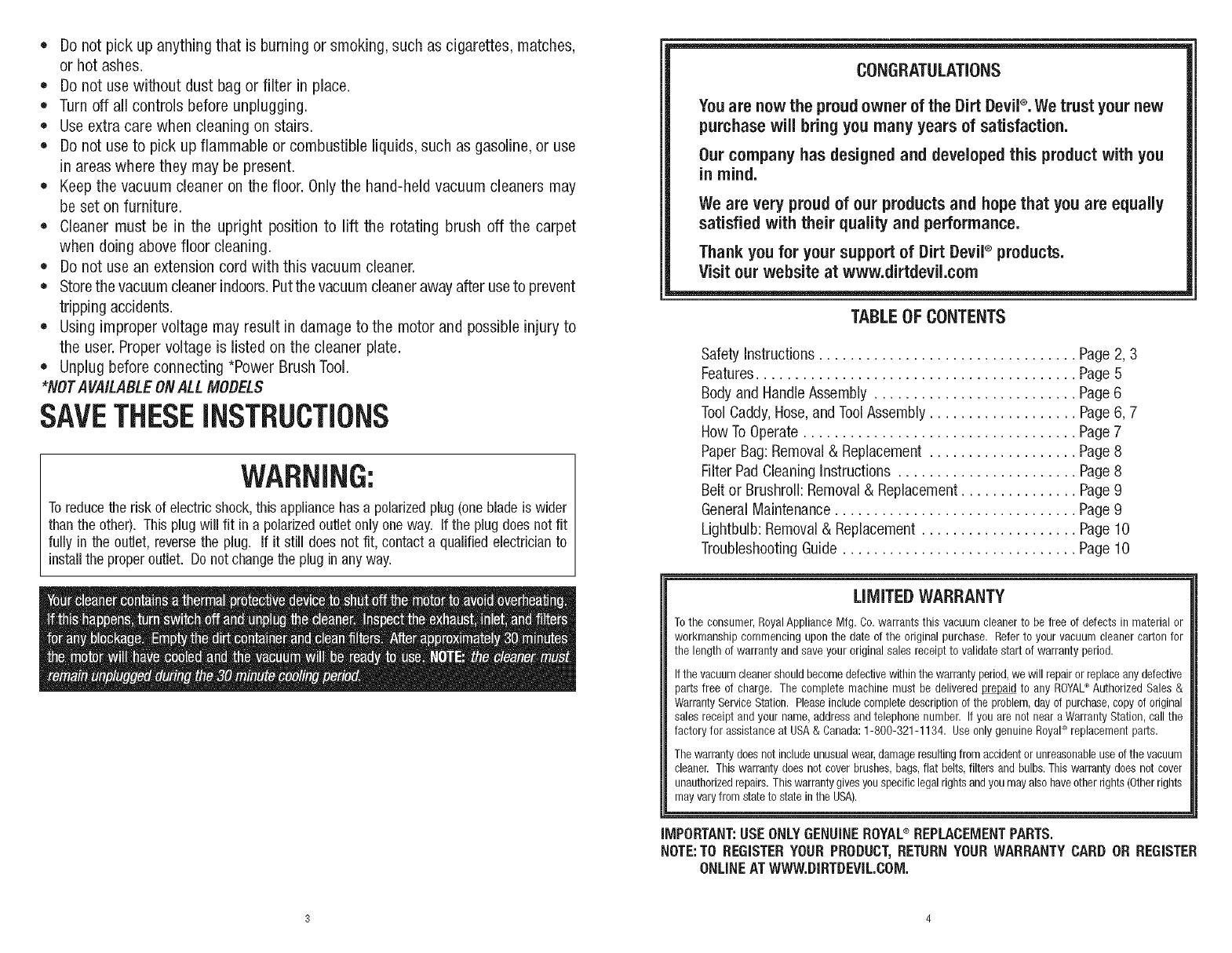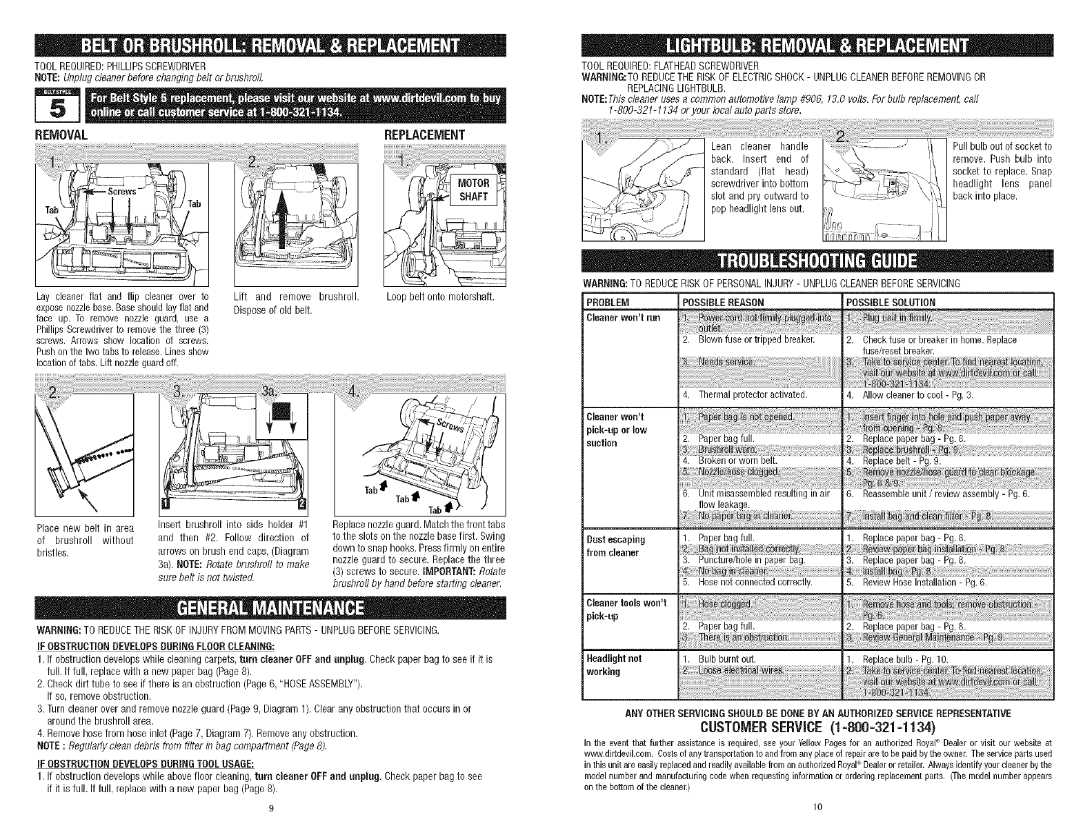 www.dirtdevil.com.Costsofany transportationtoand fromanyplace of repairare to be paid bythe owner.Theservice partsused
