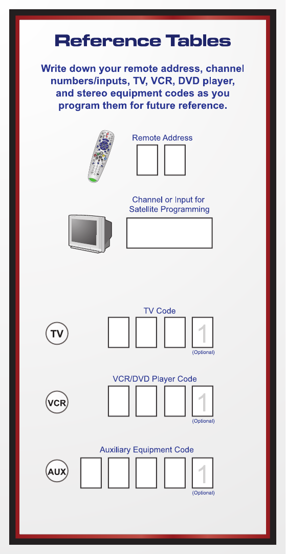 Your Remote Control Codes..........................Inside Back Cover