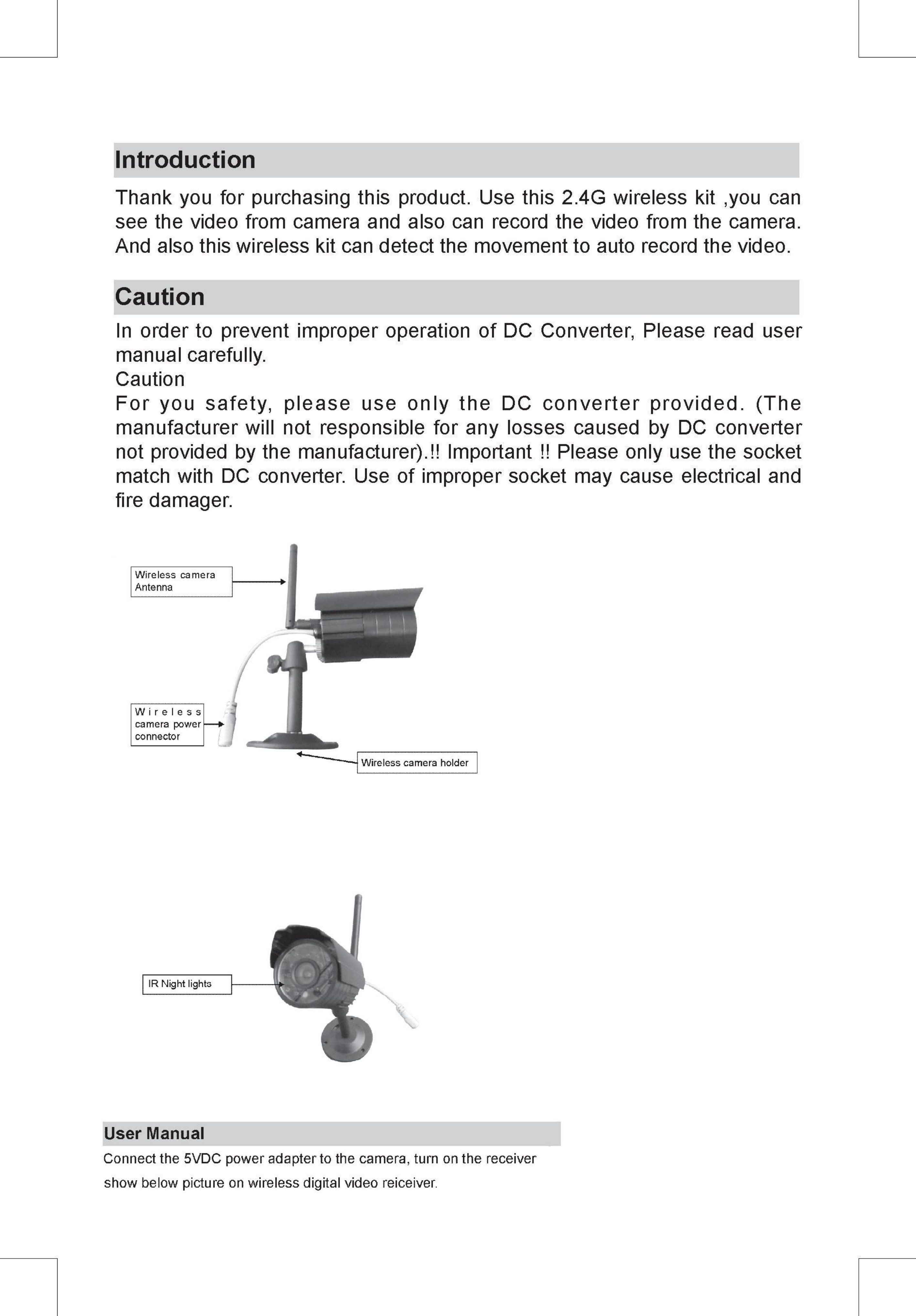 SHENZHEN DIT SECURITY&SURVEILLANCE; TECHNOLOGY CO.,LTD Wireless Kit Camera Users Manual