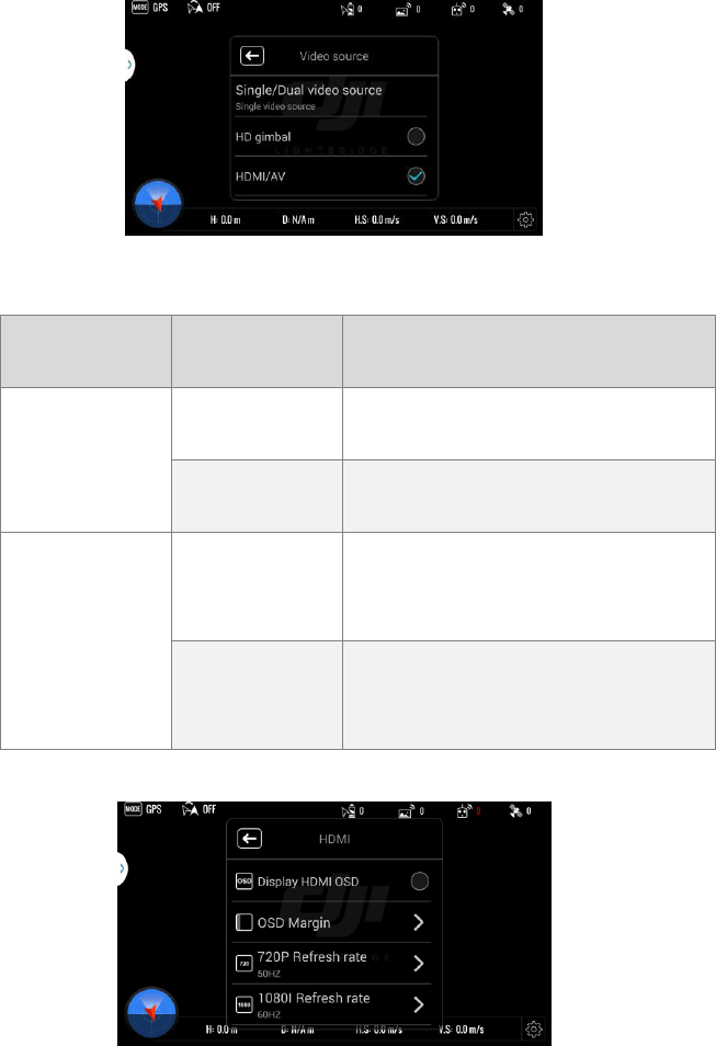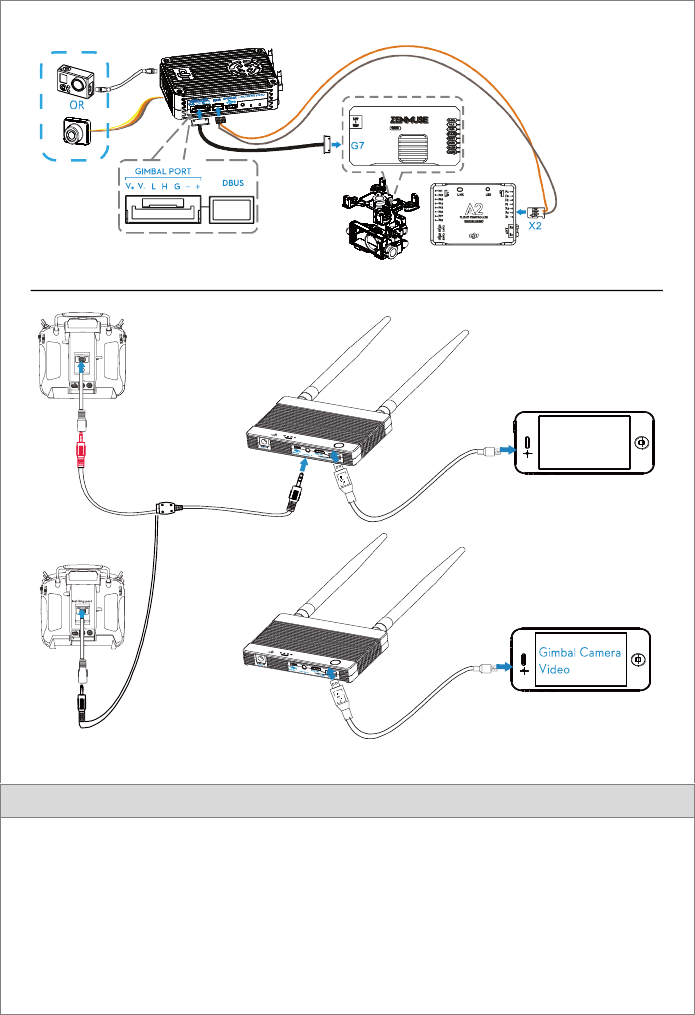 (8) Do not rotate gimbal if connected to camera HDMI port using DJI AV gimbal. This will cause gimbal