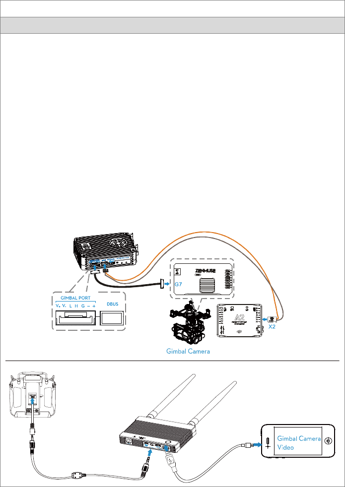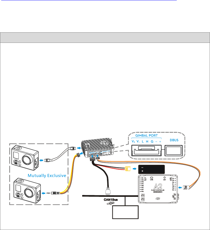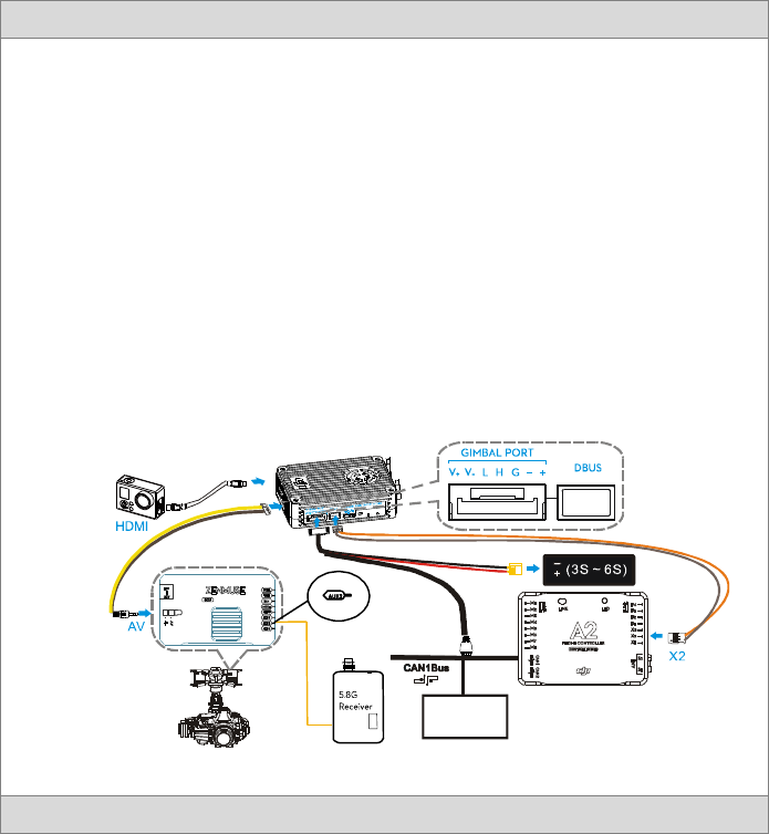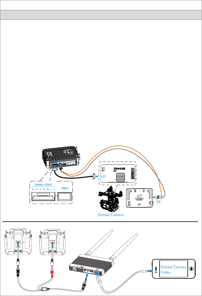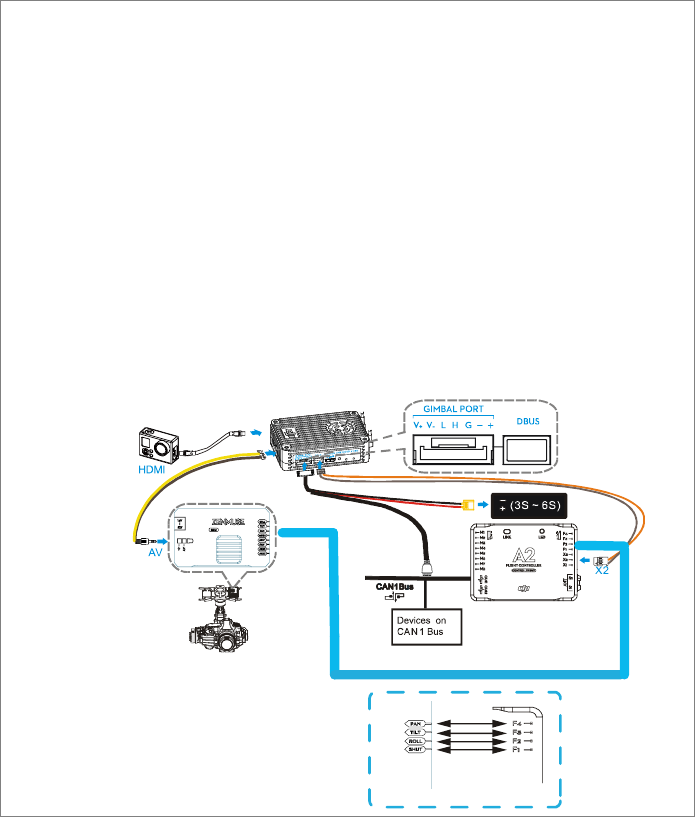 aircraft and the other for gimbal control. A DJI flight control system with DBUS port is required as the built in