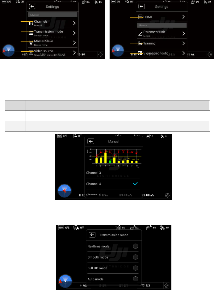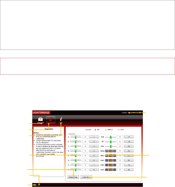 (4) Check remote control channels using DJI LIGHTBRIDGE Assistant before every use to ensure a good