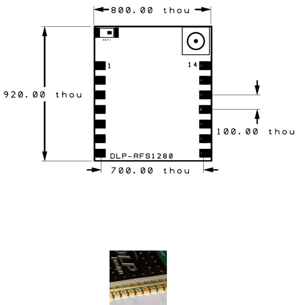 The DLP-RFS1280 module can be either surface mounted to a printed circuit board or connected
