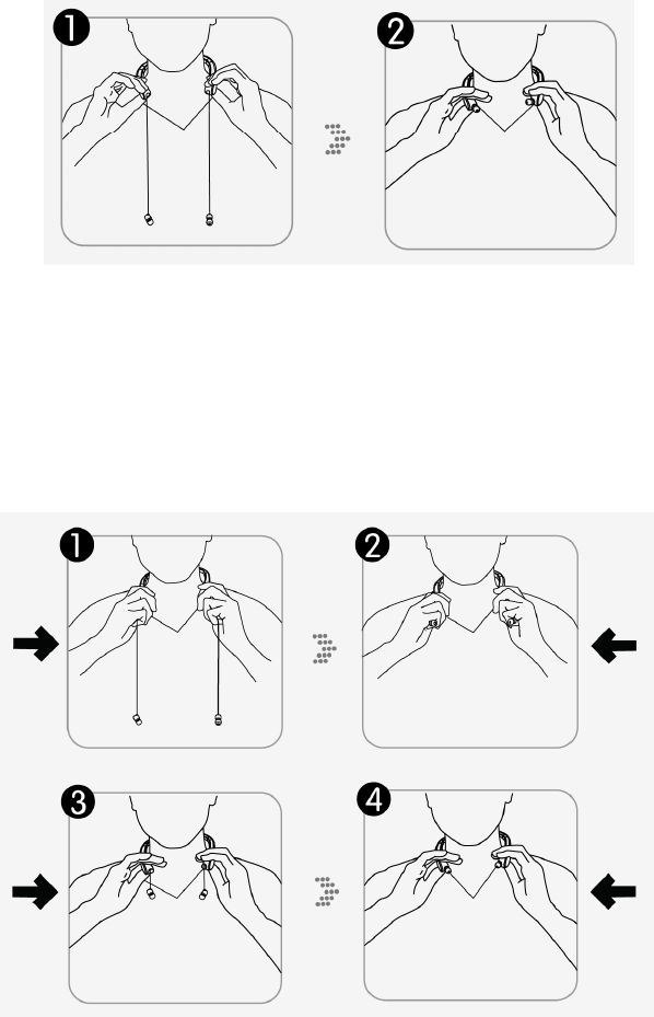 In order to prolong the working life of the headset, please setback the wire slowly, and follow the steps shown