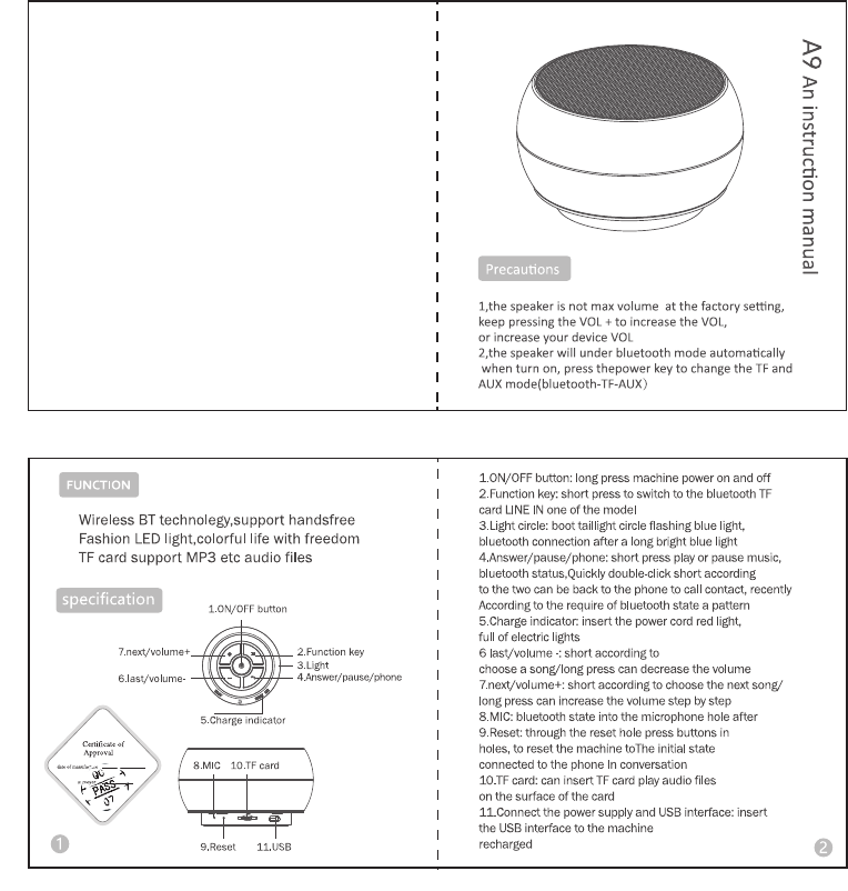 DONGGUAN LOYFUN A9 Bluetooth digital speaker User Manual