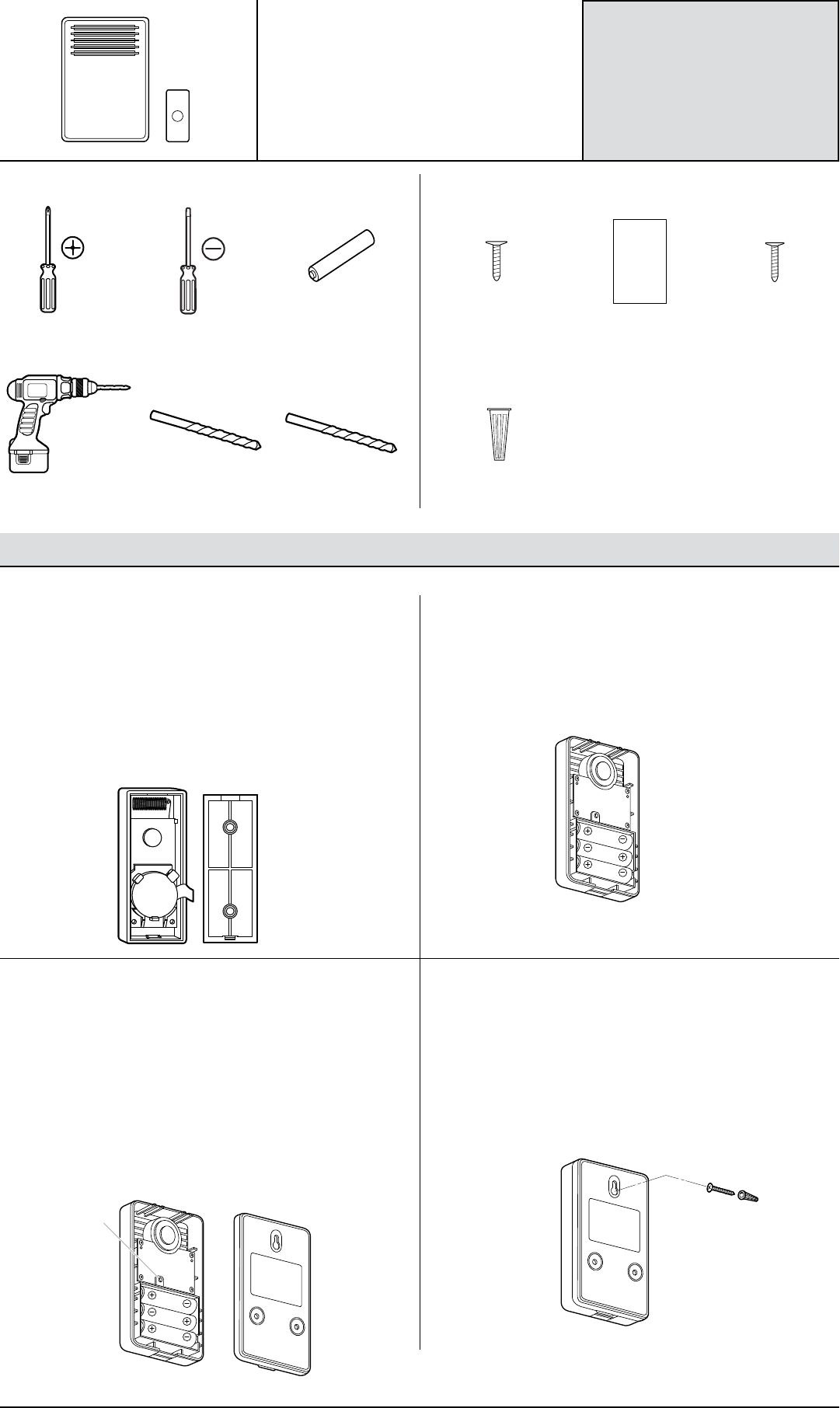 Included Hardware (2) #4 x ¾ in. Screws, (1) 18x31mm Adhesive Sticker, (1) #6 x ¾ in. Screw, and (1) Wall Anchor