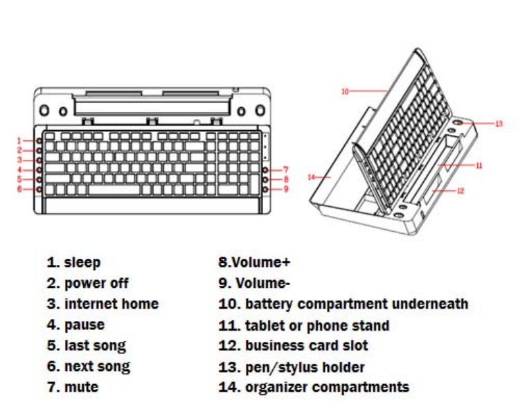 3. This Bluetooth keyboard can only work with any computer/notebook, tablet, or smart phone which has built in