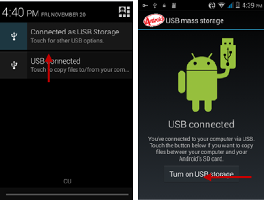 status bar. Slide down bar and click on connection icon. Once in the connection mode interface, select