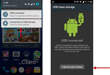 status bar. Slide down bar and click on connection icon. Once in the connection mode interface, select