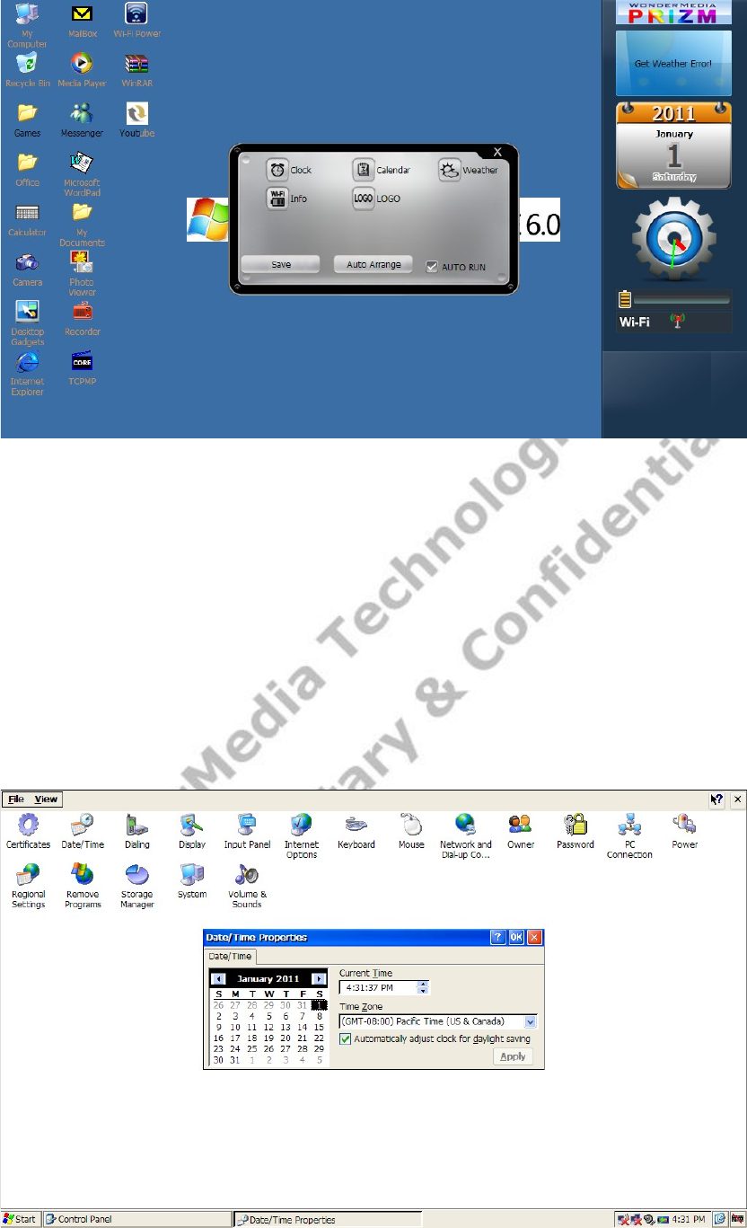 RUN” can choose whether display the Desktop Gadgets with power on.