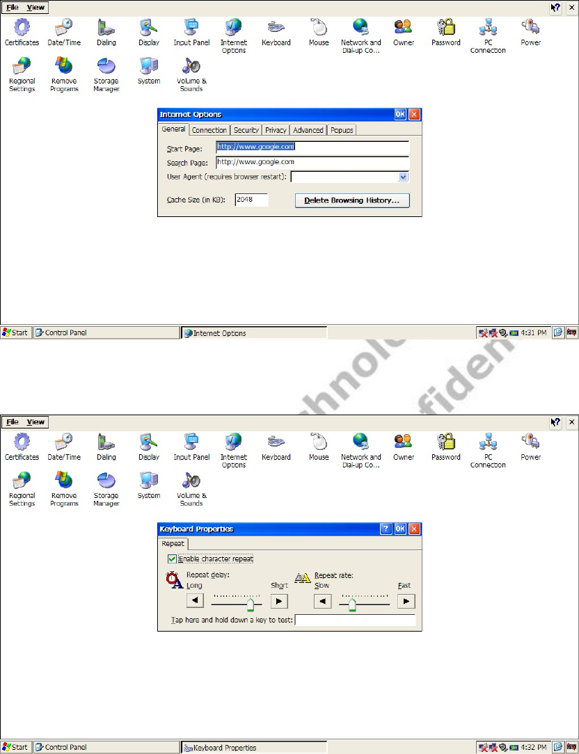 default Start Page, Search Page, Security and Privacy settings as well as popup blocking.
