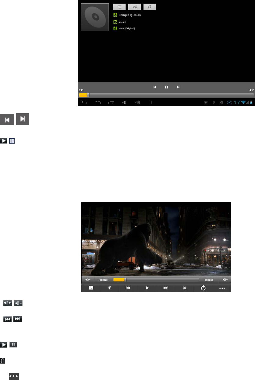 “/ ”:Selectaprevious/nextvideoandfastbackward/fastforwardinthecurrentvideo;youcanalsorealize