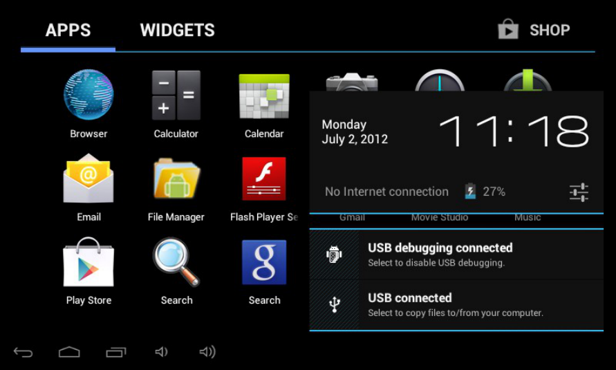 peapod,youshouldopen"USBdebugging"modethrough"Settings"‐"System"‐"Developer'soption".TheUSB