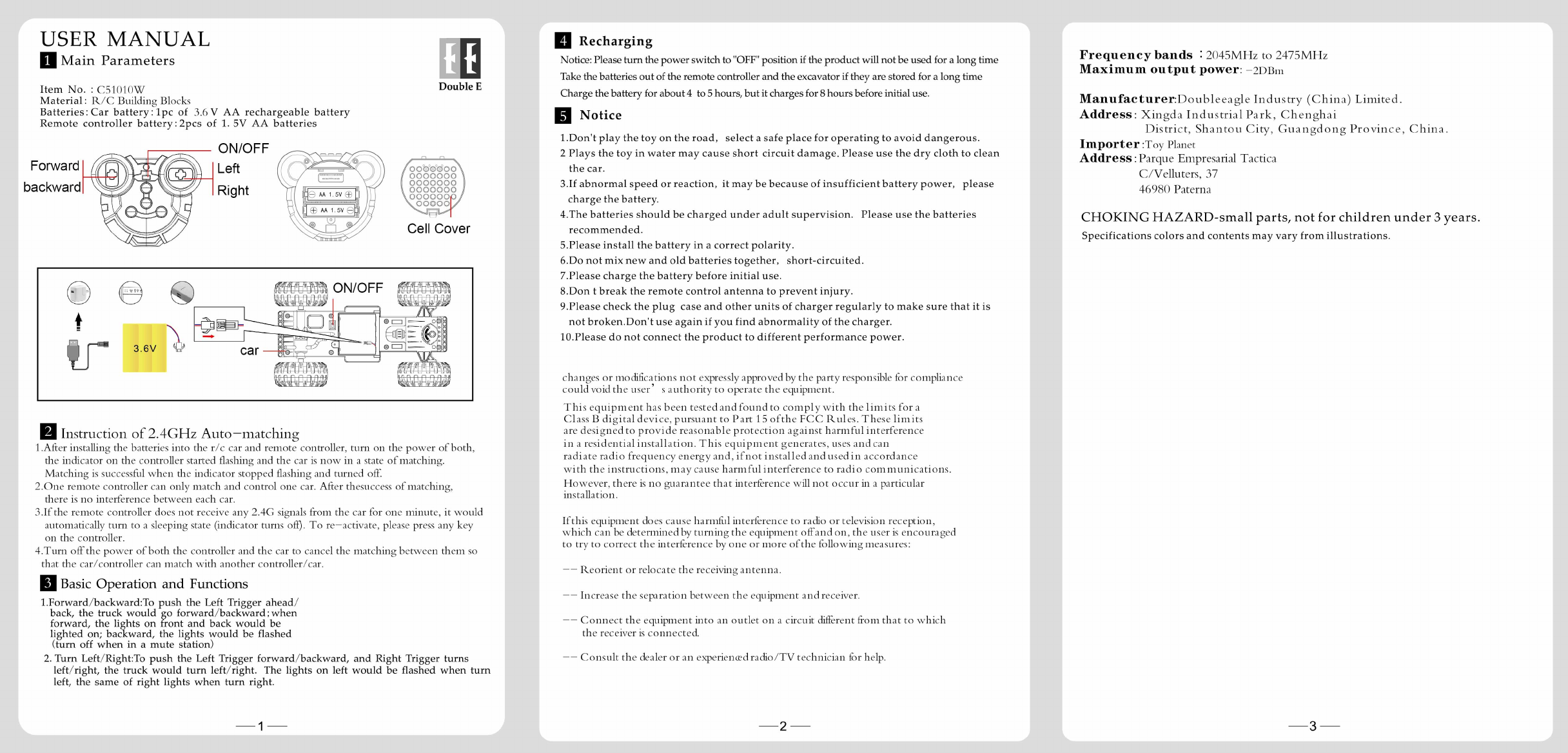 DOUBLEEAGLE INDUSTRY (CHINA) LIMITED R/C Building Blocks Users Manual