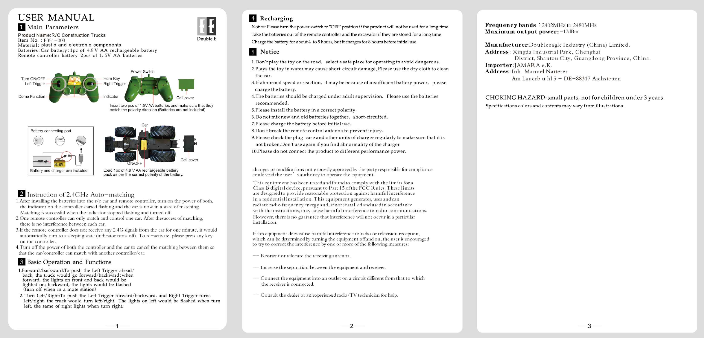 DOUBLEEAGLE INDUSTRY (CHINA) LIMITED R/C Construction Trucks Users Manual
