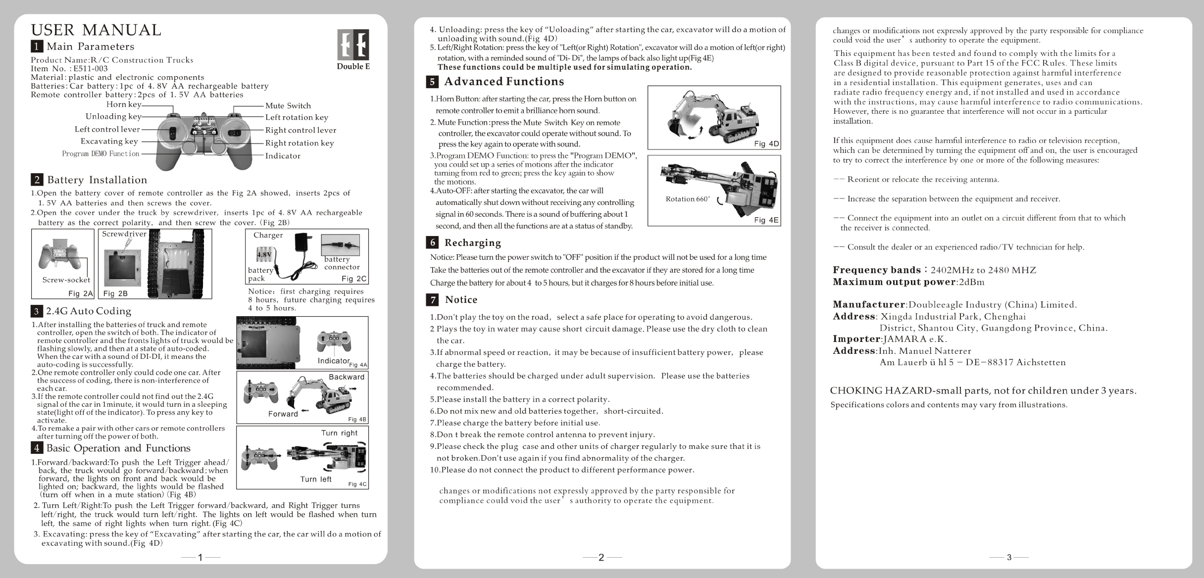 DOUBLEEAGLE INDUSTRY SY-E511-003 R/C Construction Trucks User Manual