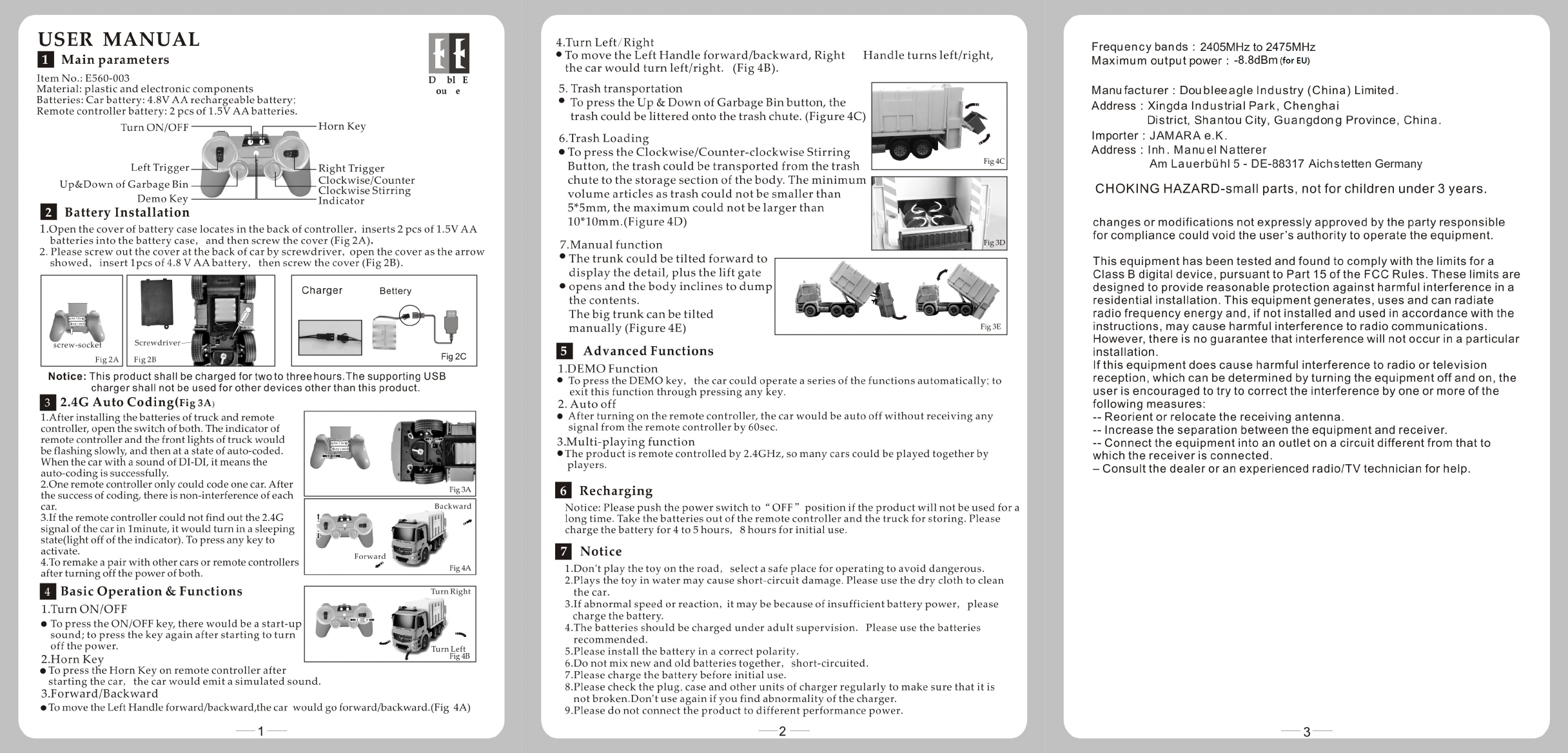 DOUBLEEAGLE INDUSTRY (CHINA) LIMITED Radio Control Toys Users Manual