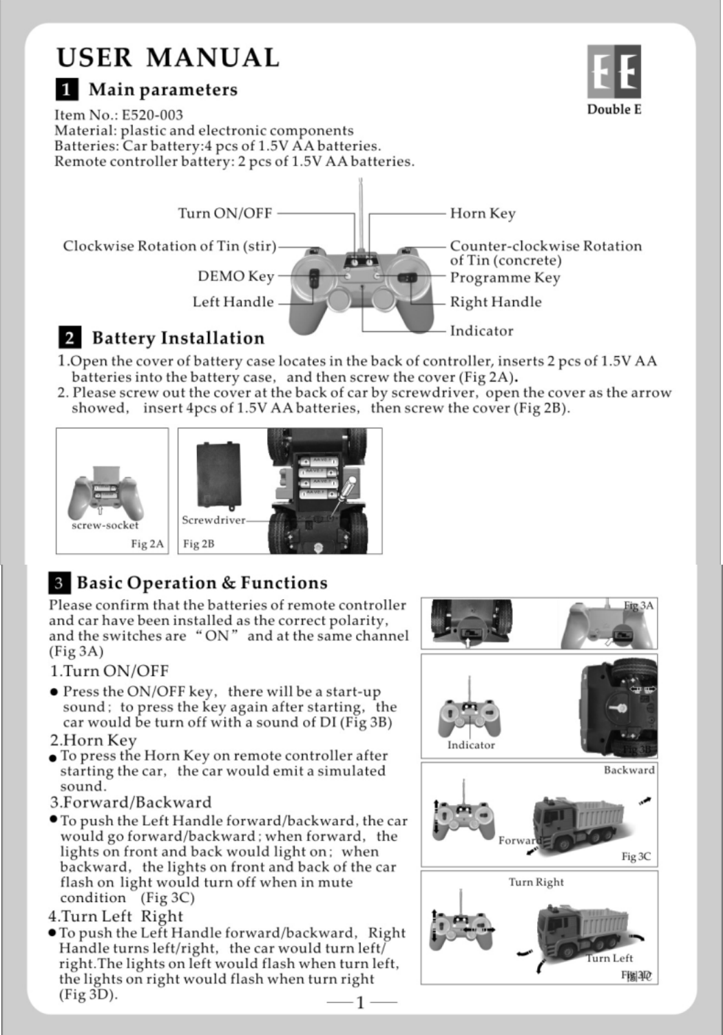SHANTOU DOUBLE EAGLE TOYS INDUSTRY CO., LTD. ENGINEERING VEHICLE USERS MANUAL