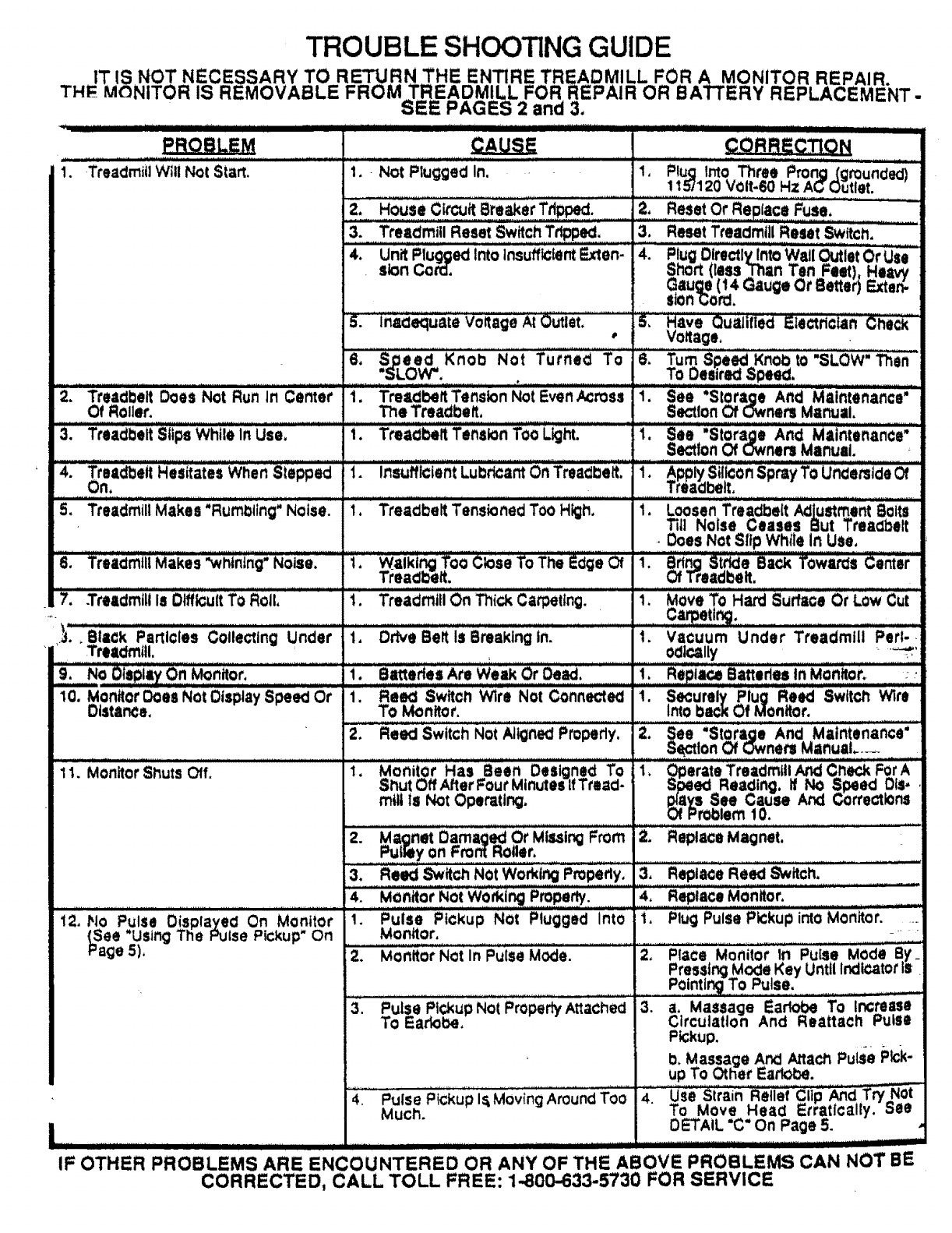 1. -Treadmill Will Not Siart.