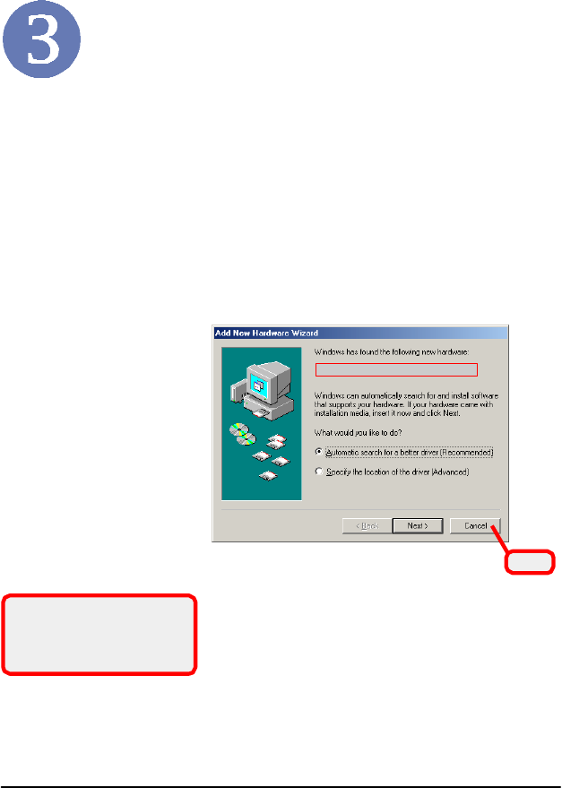 to con- figure the new device. Click Cancel here to