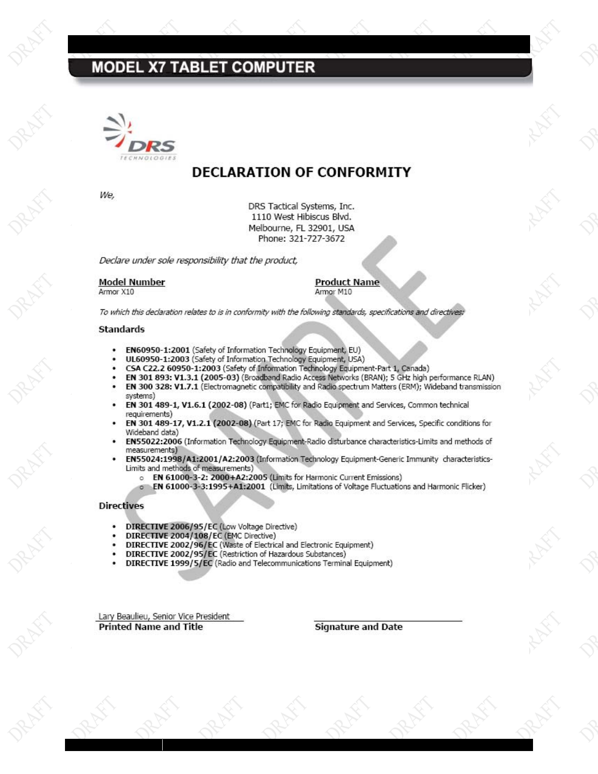 • This X7 tablet computer has been tested for compliance with ATEX directive 94/9/EC.