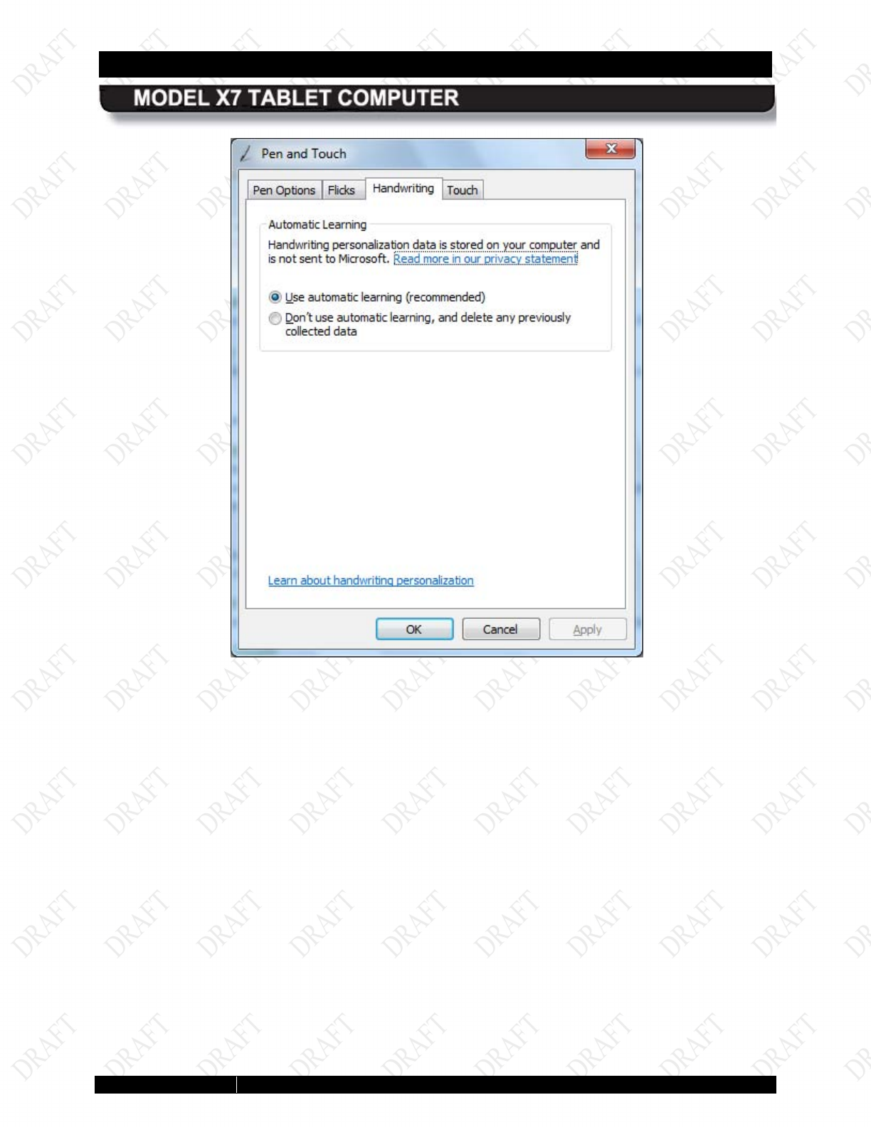 Erase Enables the pen tip to act like an eraser in handwriting applications