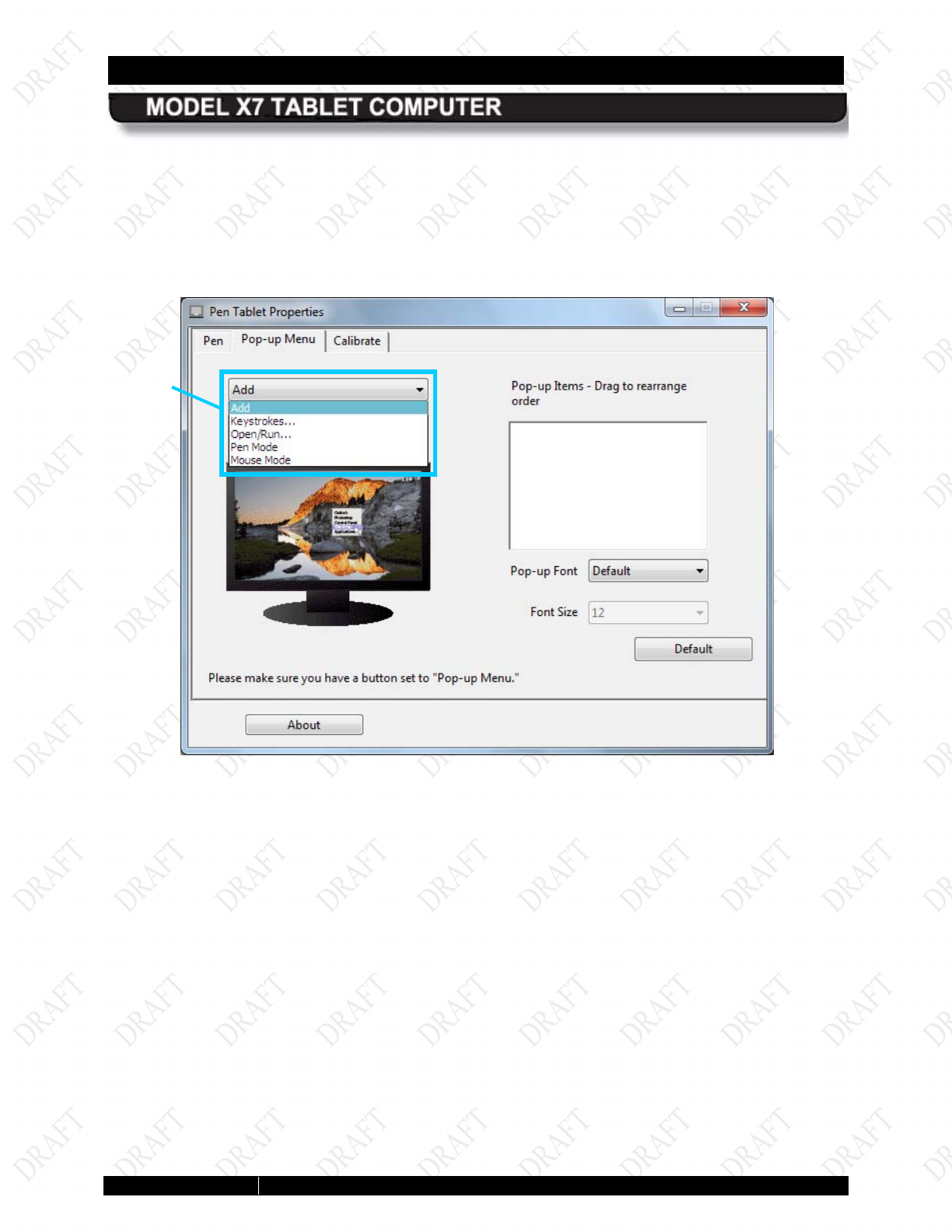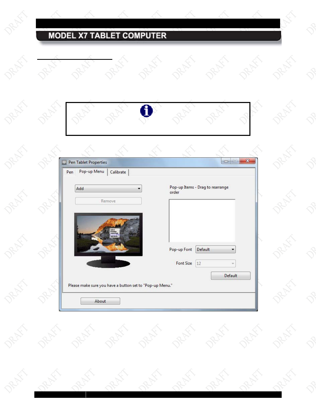 Pop-up Menu tab of the Pen Computer Properties dialog.