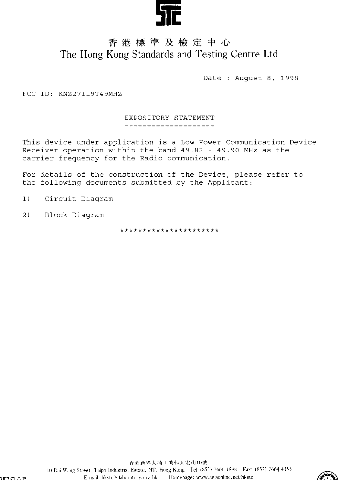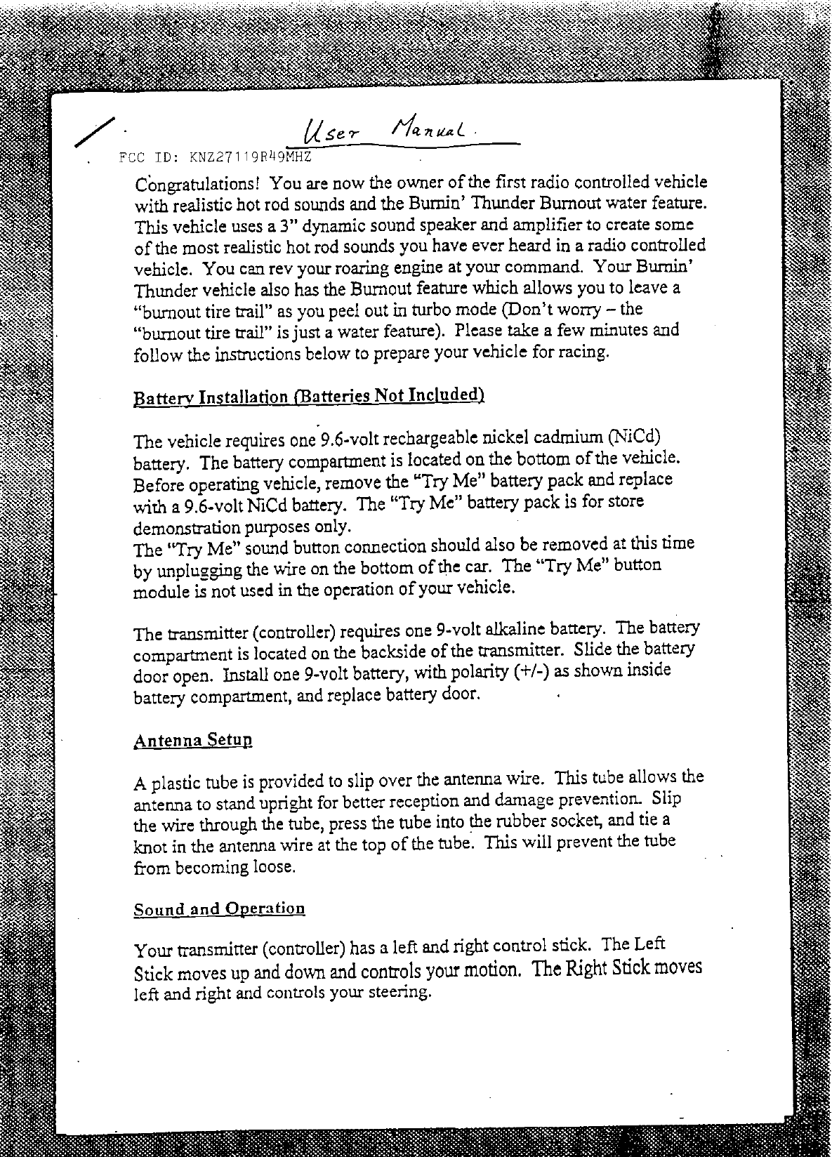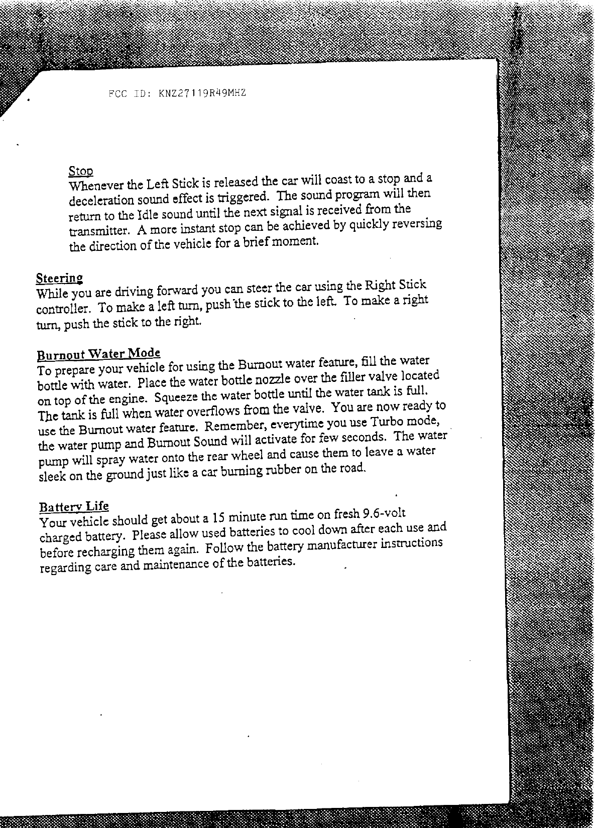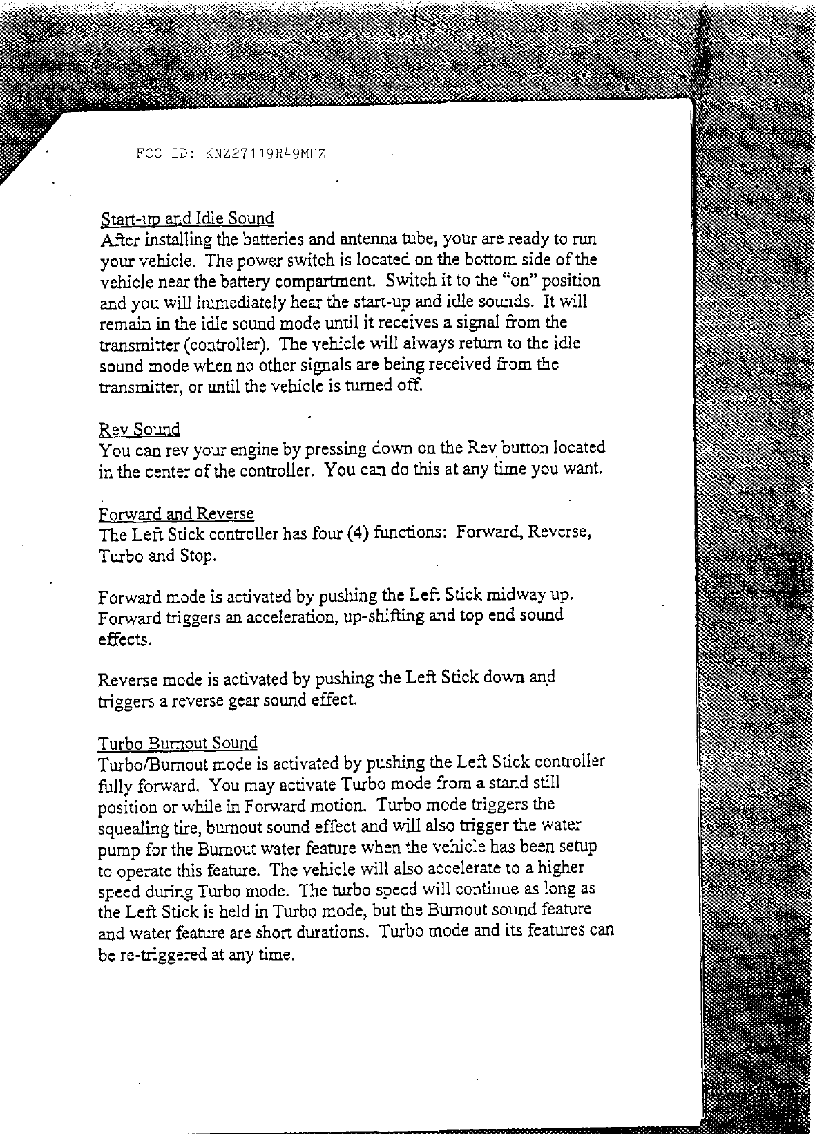 DSI 27119R49MHZ R/C Toy Car Receiver User Manual 41522