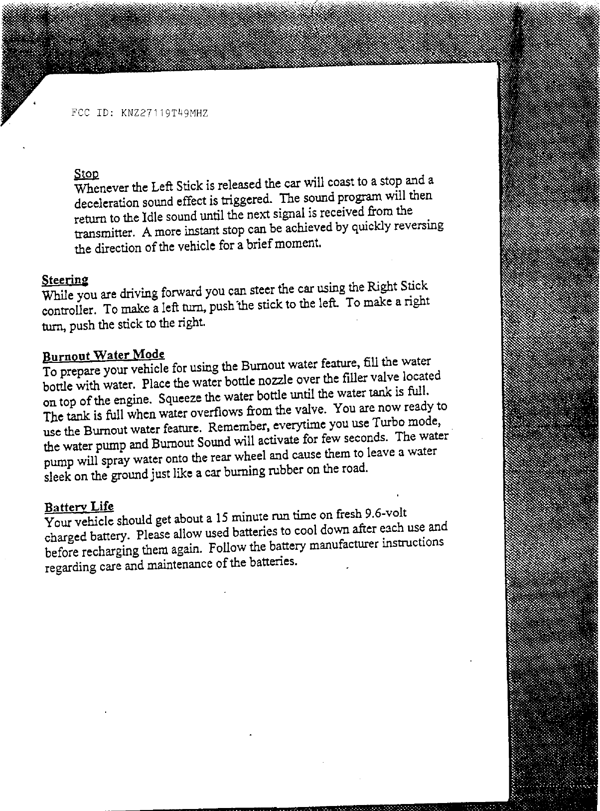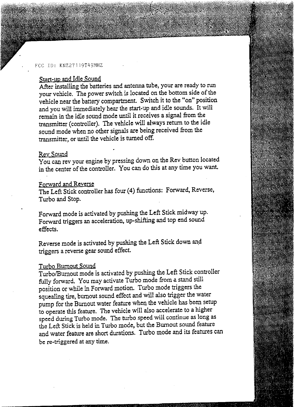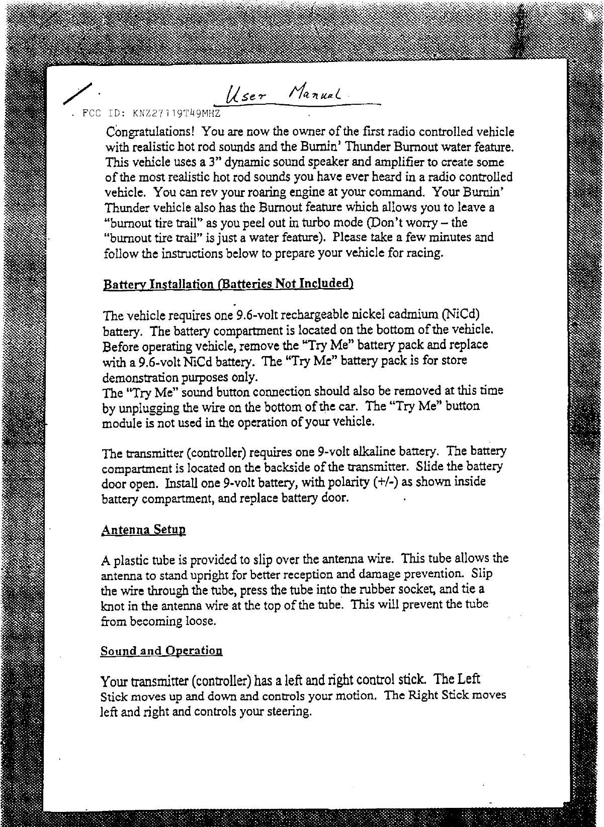 DSI 27119T49MHZ R/C Toy Car Transmitter User Manual 56113