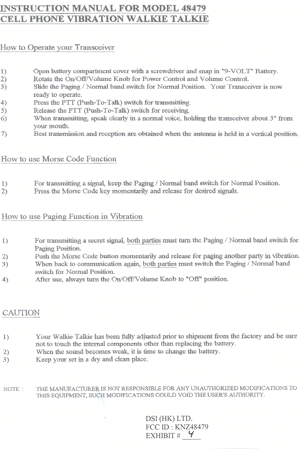 DSI 48479 User Manual Instruction Manual