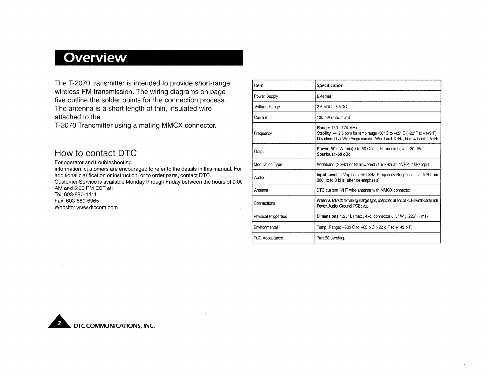 DTC Communications T2070 Surveillance TransmItter for Law Enforcement User Manual Exhibit D Users Manual per 2 1033 c3