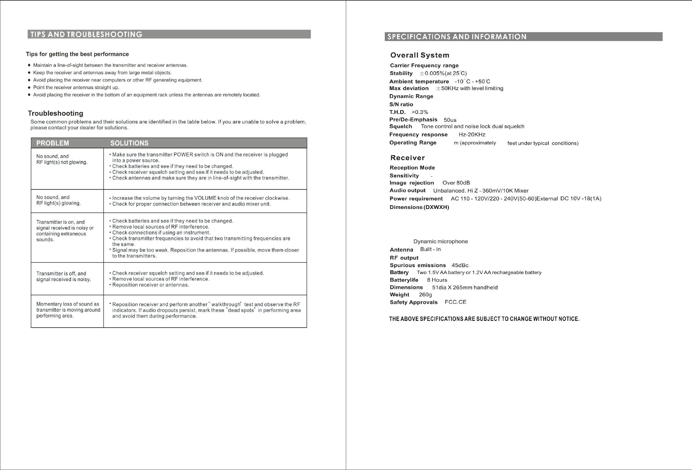 Thank you for purchasing the Wireless Microphone System and congratulations on your choice.